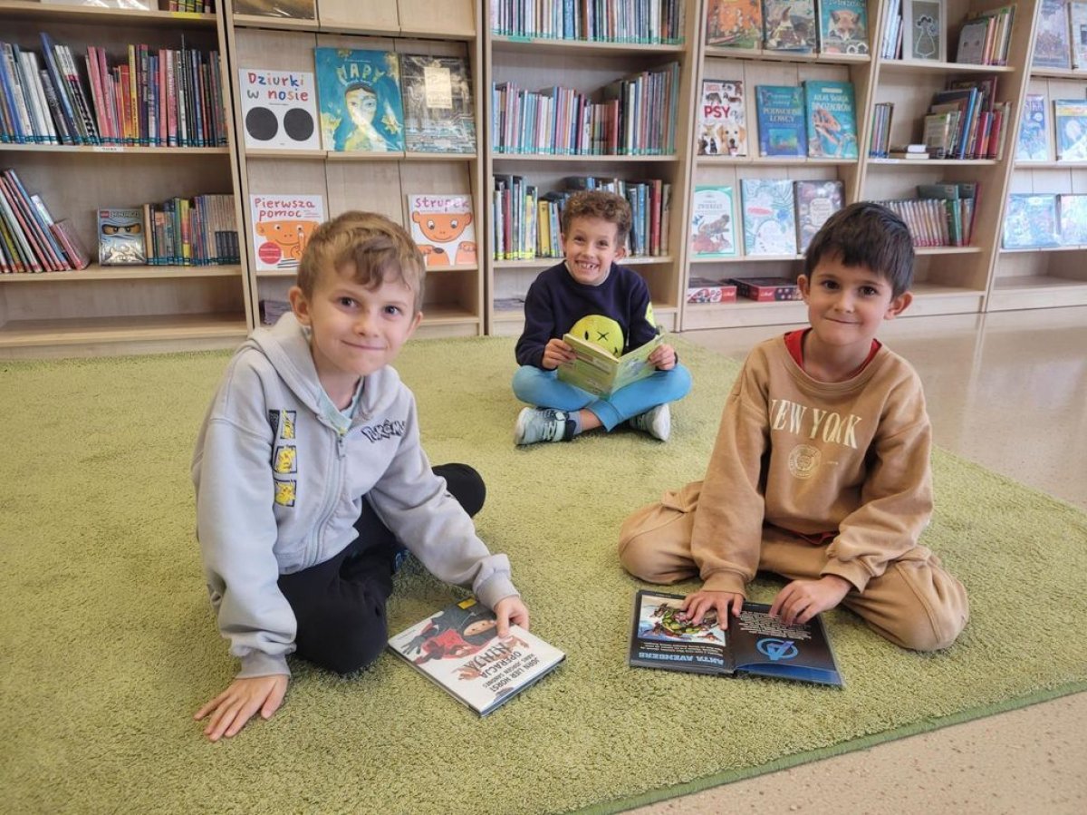 Jak co roku w październiku uczniowie klas pierwszych odwiedzili wraz z wychowawcami szkolną bibliotekę, by poznać tajniki bycia czytelnikiem. Uczyli się, gdzie w wypożyczalni znaleźć książki podróżnicze a gdzie przygodowe, w którym miejscu stoją pozycje o zwierzętach a w którym opowiadania z dużą czcionką. Mieli też czas, by pooglądać książki i czasopisma znajdujące się w czytelni. Po takiej wizycie każdy z nich wyszedł z samodzielnie wypożyczoną książką.