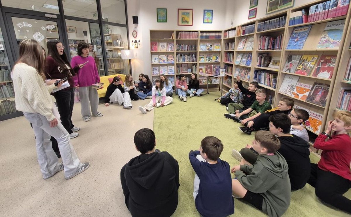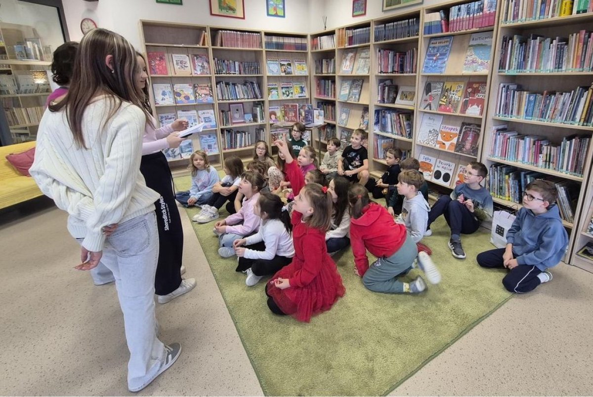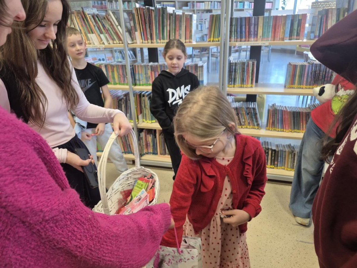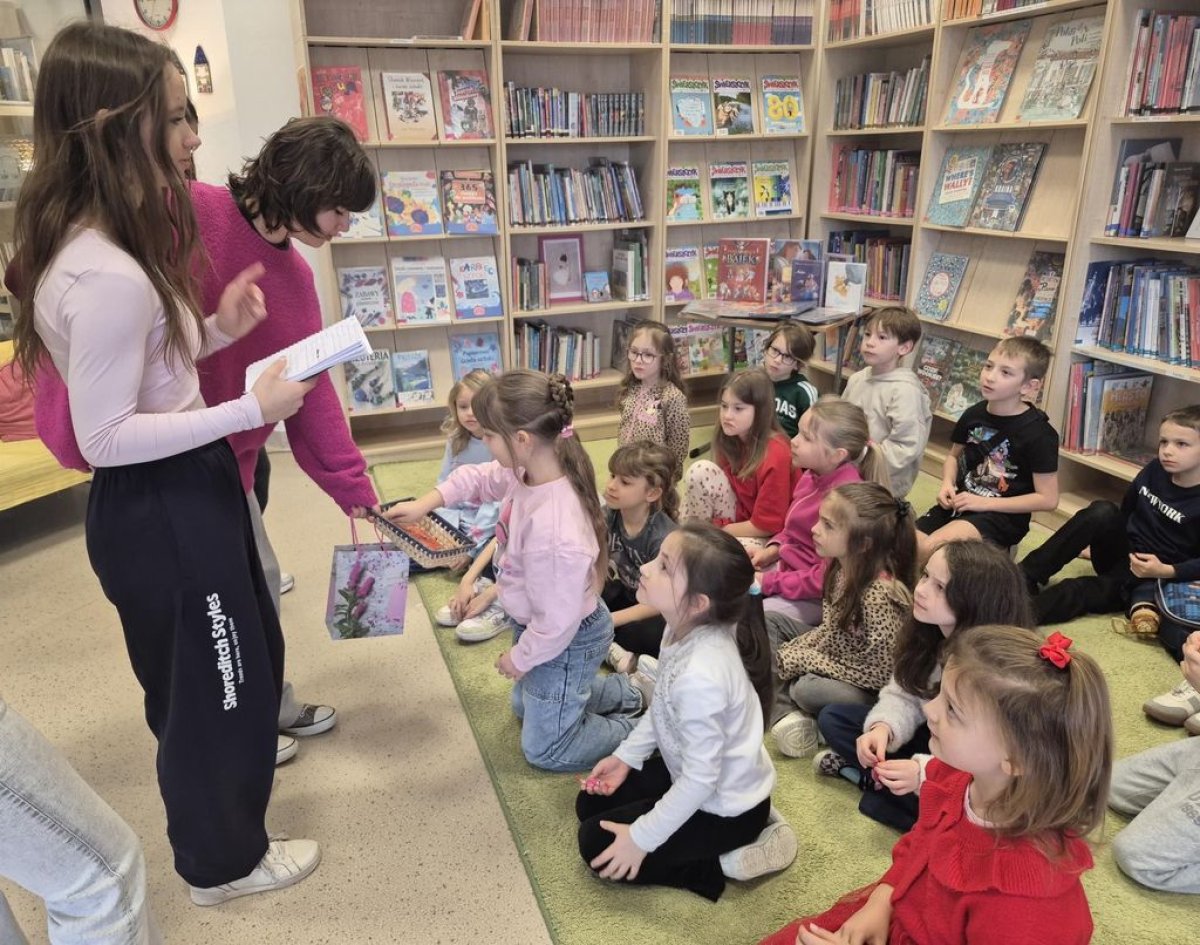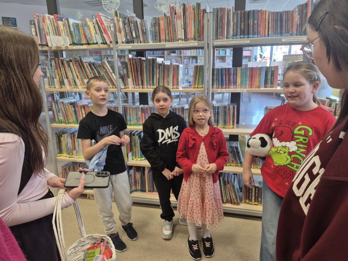 Tuż przed feriami uczennice z klas 7-8 poprowadziły w szkolnej bibliotece „Książkowe Walentynki”. Zadawały swoim młodszym kolegom i koleżankom pytania o bohaterów z literatury dziecięcej i młodzieżowej, w której występuje wątek miłosny. Miały też przygotowane drobne upominki za poprawne odpowiedzi. Drugim etapem tej akcji było przepytywanie uczniów w czasie przerw.