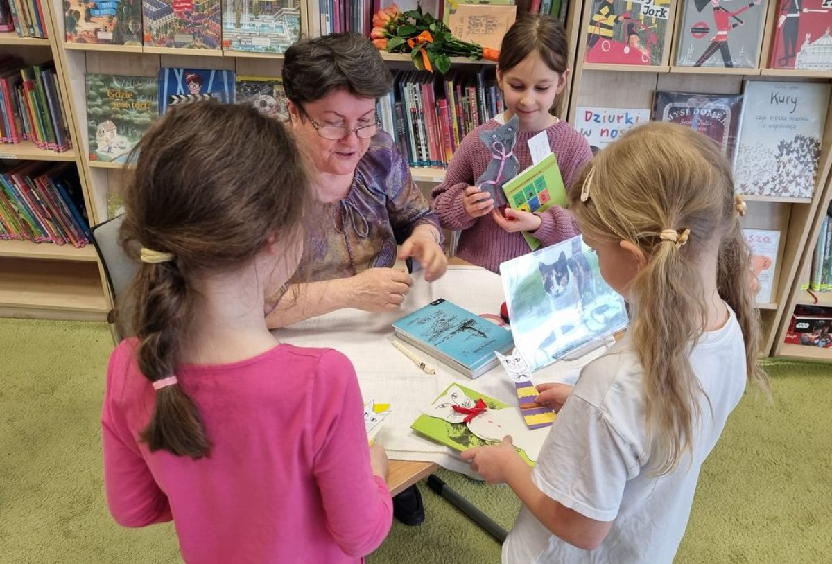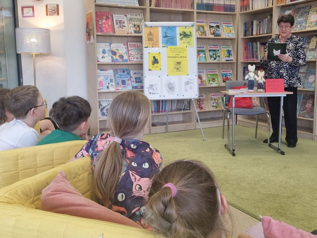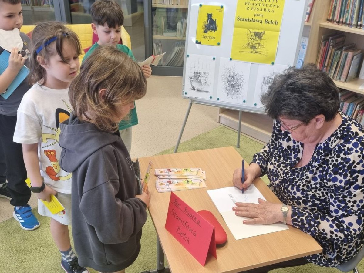 W marcu i w kwietniu w naszej szkolnej czytelni odbyły się „Kocie warsztaty z pisarką”. Poprowadziła je autorka książek dla dzieci pani Stanisława Bełch. W pierwszej części zajęć opowiadała uczniom o Snipie i Kociu. Te dwa rezolutne koty przeżywają wiele ciekawych przygód, a przy okazji uczą się poznawać świat wokół siebie. Dzieci słuchały o ich przygodach w górach, nad morzem i o zwiedzaniu Rzeszowa.