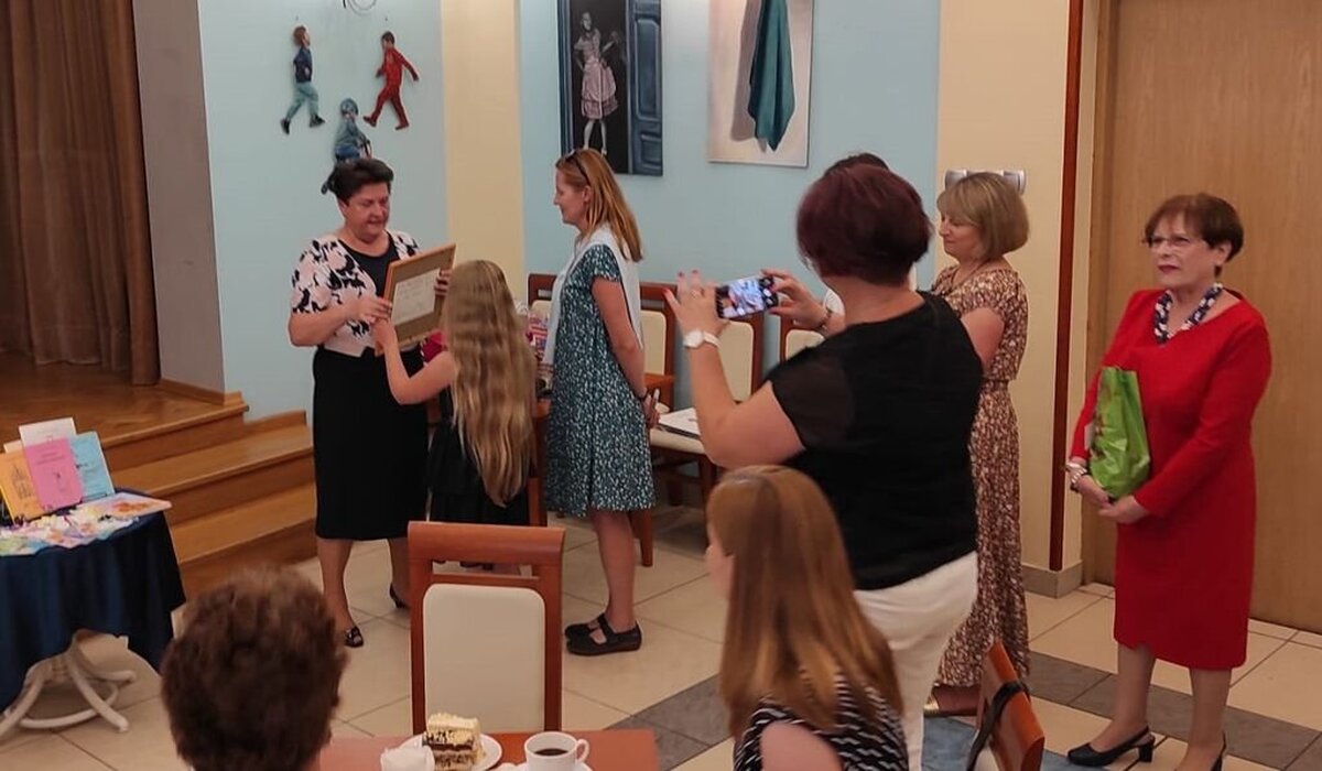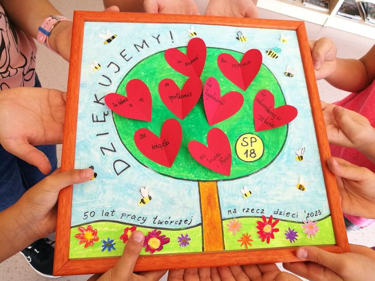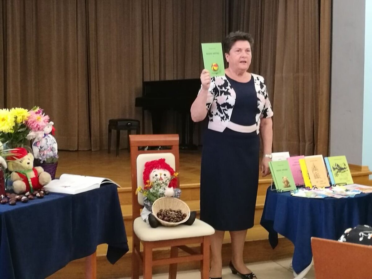 W czwartek 28 września w Wojewódzkim Domu Kultury odbył się jubileusz 50-lecia pracy twórczej pani Stanisławy Bełch, pisarki która często gości w naszej szkole opowiadając o napisanych przez siebie książkach. W czasie tej uroczystości Malwina Dziedzic z klasy 3e recytowała jeden z wierszy pani Stanisławy. Została też poproszona o pomoc w rozdawaniu zgromadzonym gościom przygotowanych przez autorkę zakładek. Malwina jako przedstawicielka szkoły wręczyła pani pisarce obrazek wykonany przez naszych uczniów, do którego dołączyliśmy podziękowania i życzenia wielu twórczych pomysłów.