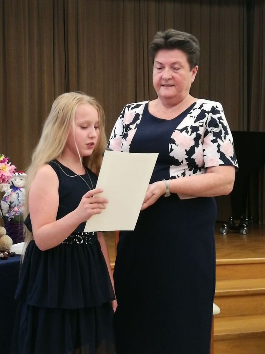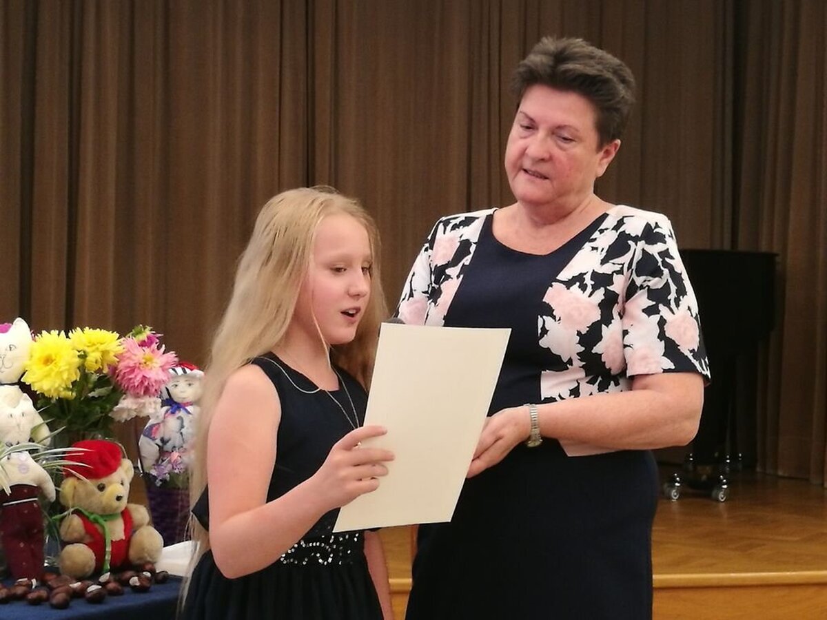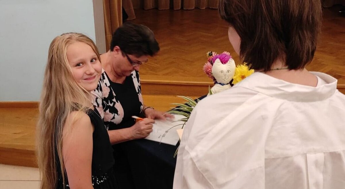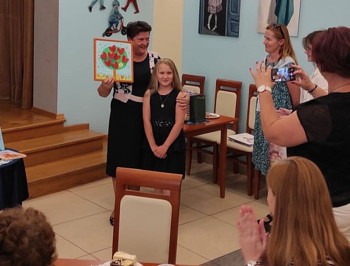 W czwartek 28 września w Wojewódzkim Domu Kultury odbył się jubileusz 50-lecia pracy twórczej pani Stanisławy Bełch, pisarki która często gości w naszej szkole opowiadając o napisanych przez siebie książkach. W czasie tej uroczystości Malwina Dziedzic z klasy 3e recytowała jeden z wierszy pani Stanisławy. Została też poproszona o pomoc w rozdawaniu zgromadzonym gościom przygotowanych przez autorkę zakładek. Malwina jako przedstawicielka szkoły wręczyła pani pisarce obrazek wykonany przez naszych uczniów, do którego dołączyliśmy podziękowania i życzenia wielu twórczych pomysłów.