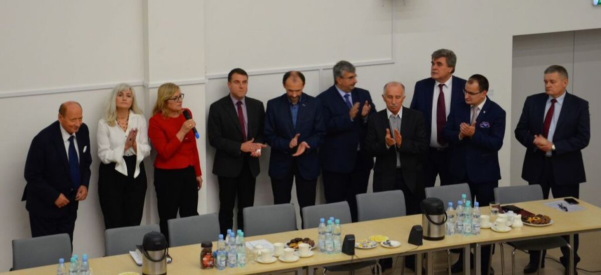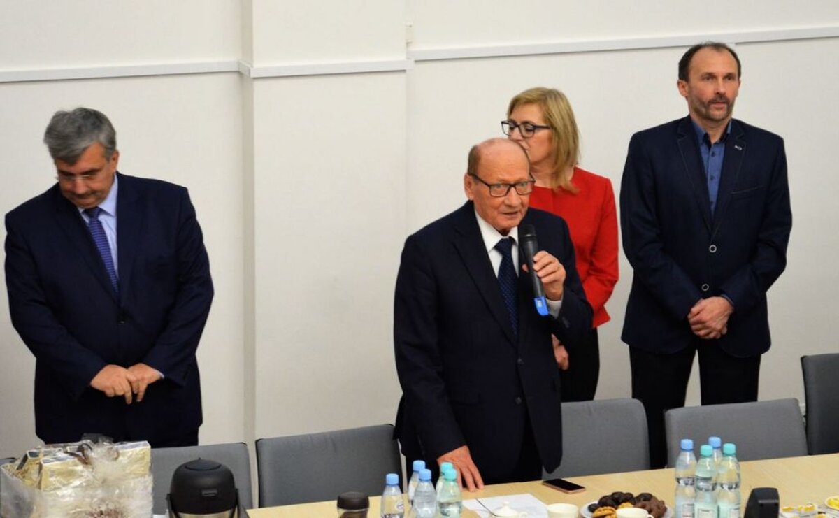 W piątek, 27 października 2017r. mieliśmy zaszczyt gościć w naszych progach Prezydenta Miasta Rzeszowa p. Tadeusza Ferenca. Okazją do wizyty było robocze spotkanie z mieszkańcami pobliskich osiedli w sprawie projektu przyszłorocznego budżetu. Zanim rozpoczęła się właściwa część spotkania, Pan Prezydent wrócił w rozmowie do czasów budowy szkoły, pytał o aktualne szkolne sprawy, a przede wszystkim z uśmiechem i wielką serdecznością zwrócił się do naszej młodzieży szkolnej. A potem nastąpił bardzo miły moment – przedstawiciele Samorządu Uczniowskiego złożyli Panu Prezydentowi życzenia imieninowe, a nasz chór pięknie odśpiewał „Sto lat”. Do życzeń dołączyli się wszyscy goście obecni na auli.