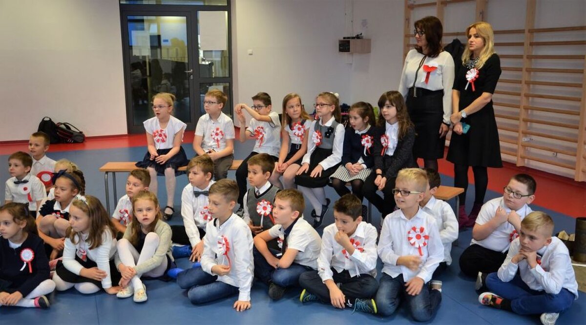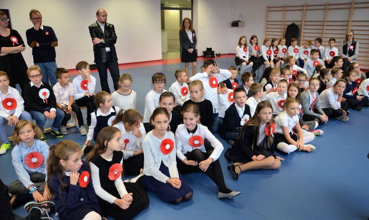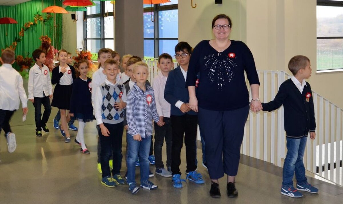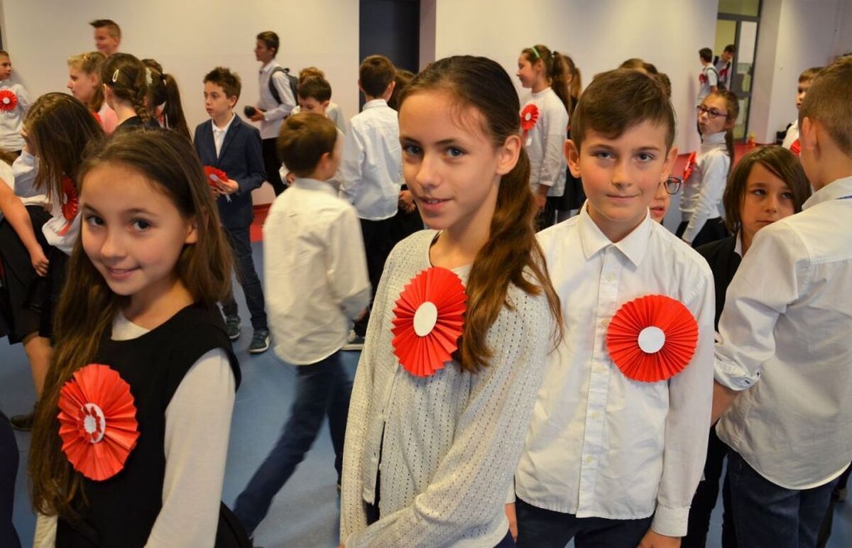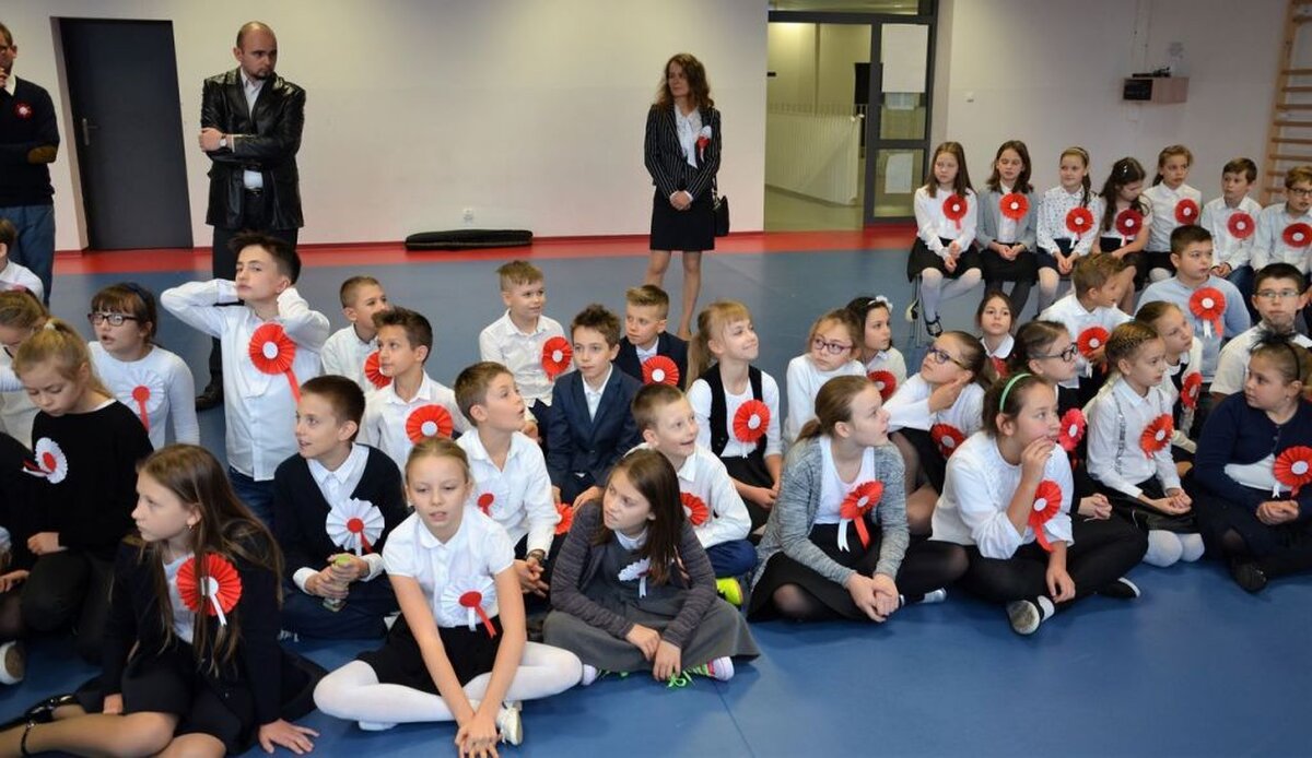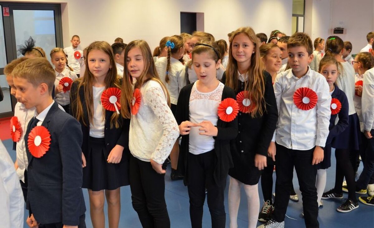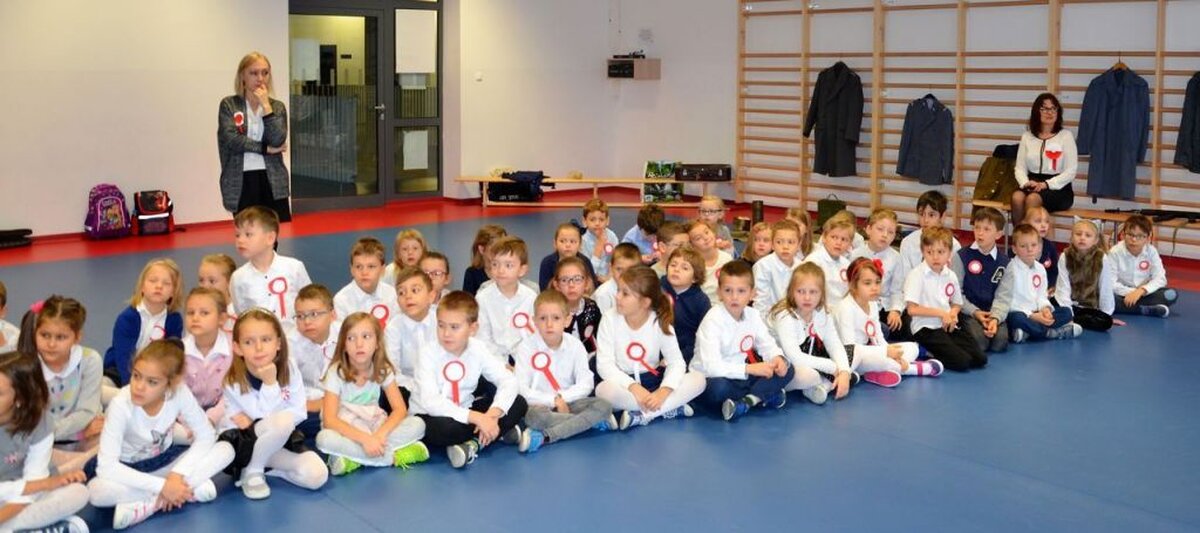 W dniu 10.11.2017 r. obchodziliśmy w naszej szkole Narodowe Święto Niepodległości. Wszyscy wychowankowie naszej szkoły, nauczyciele oraz pracownicy z dumą nosili kotyliony, wykonane przez dzieci na lekcjach plastyki i techniki. Główny hol szkoły również przybrał świąteczny wygląd – ozdobiły go prace plastyczne uczniów oraz piękne figury żołnierzy polskich.