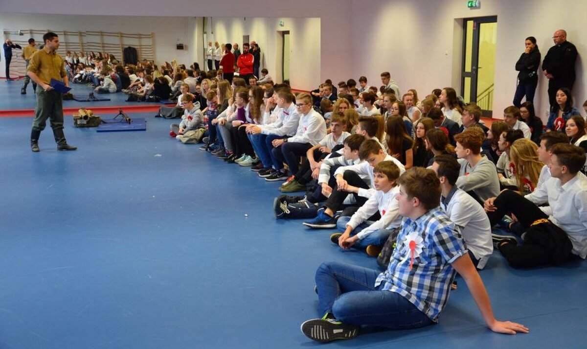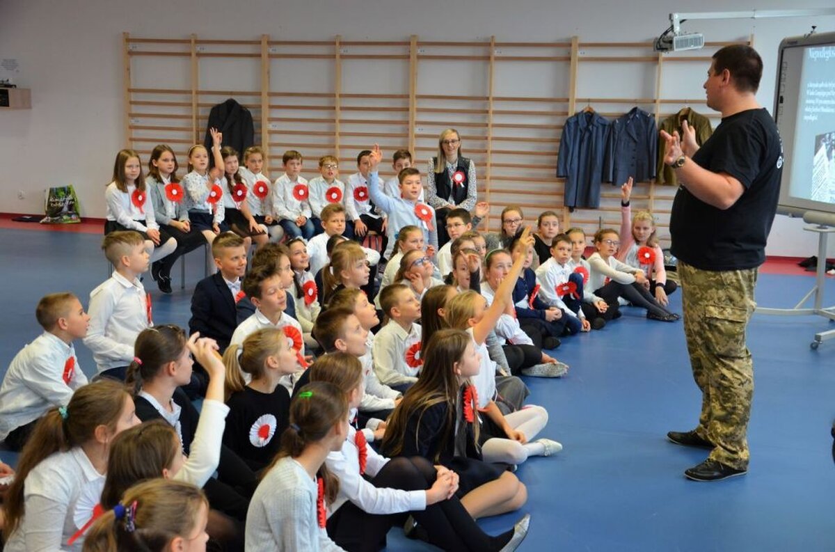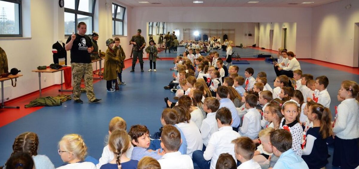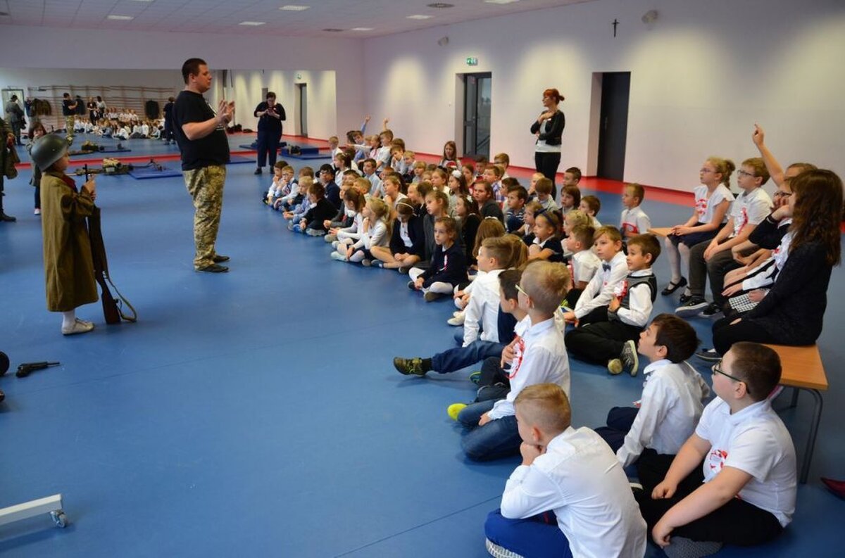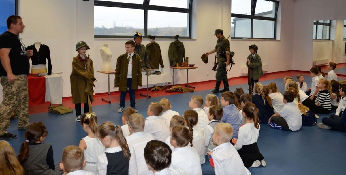 Dopełnieniem świętowania była żywa lekcja historii, którą przeprowadzili członkowie grup rekonstrukcyjnych: „Pasjonaci Ożywionej Historii – POH Rzeszów.” Prowadzący w bardzo ciekawy sposób zaprezentowali zagadnienia związane z odzyskaniem przez Polskę niepodległości. Ponadto uczniowie mieli okazję przebrać się za żołnierzy, a do munduru dostali odpowiednią broń, czapkę lub hełm. W ten sposób nasi wychowankowie stali się uczestnikami przedstawianych wydarzeń.