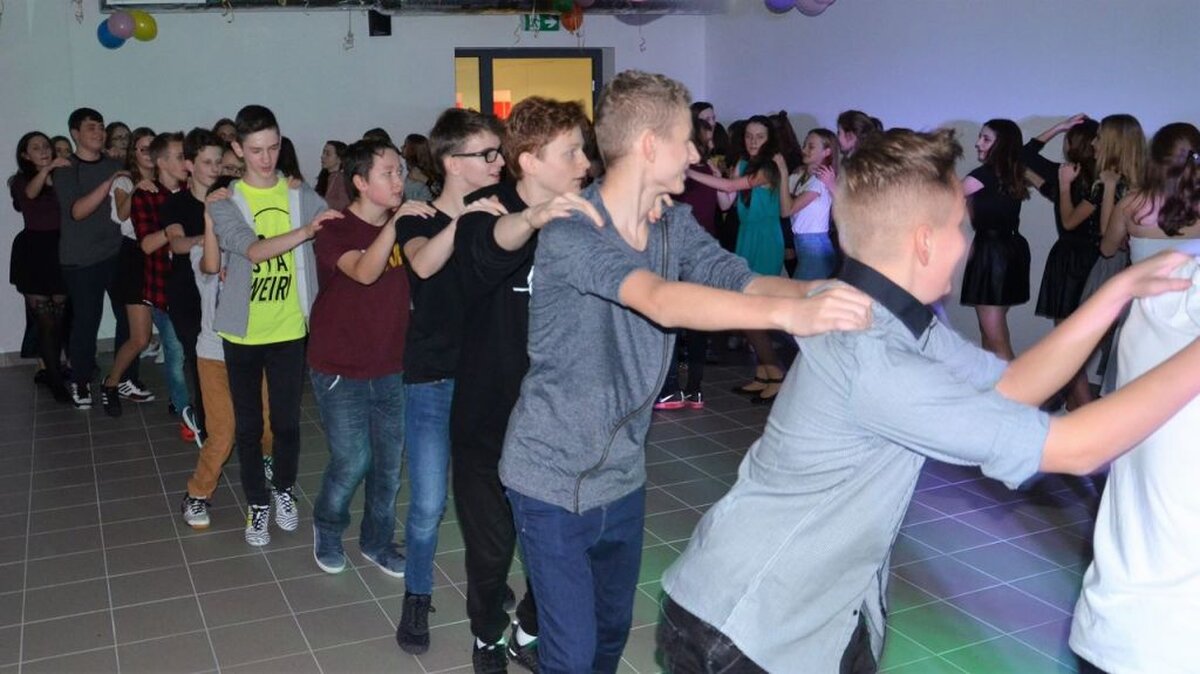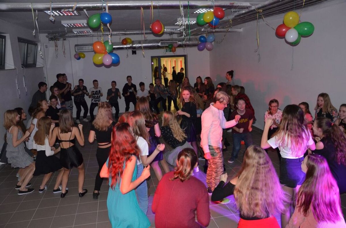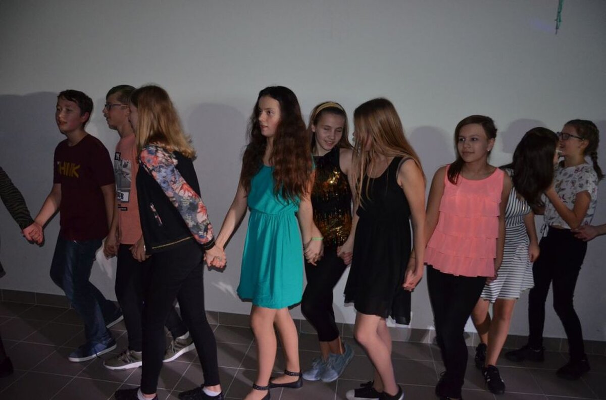 Już o godzinie 17:00 uczniowie klas siódmych szkoły podstawowej oraz drugich i trzecich gimnazjum rozpoczęli szampańska zabawę. Na parkiecie królowały najlepsze utwory z list przebojów, przy których wszyscy mieli okazję pokazać swoje umiejętności taneczne.