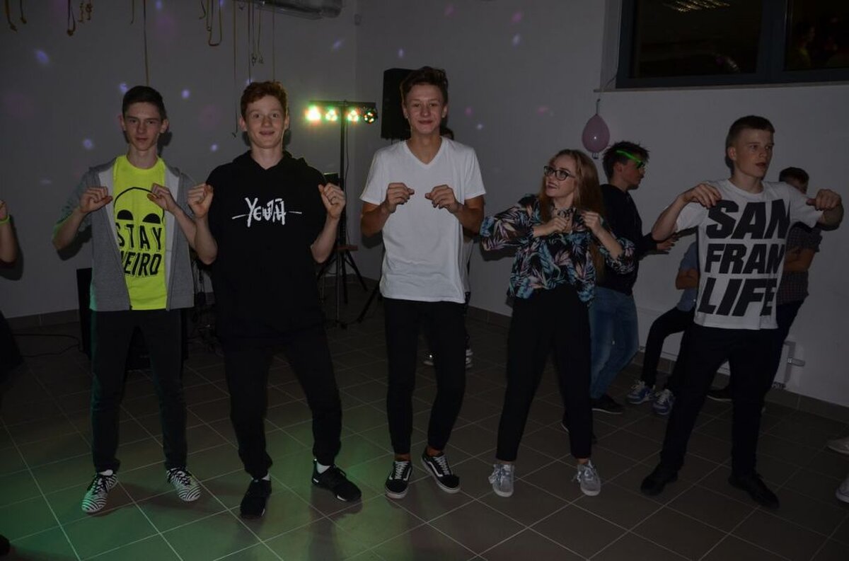 Przy kolorowych błyskach dyskotekowej kuli z twarzy poznikały wszystkie smutki, a humory naszej młodzieży dodatkowo poprawiła smakowita pizza i słodki poczęstunek przygotowany przez rodziców.