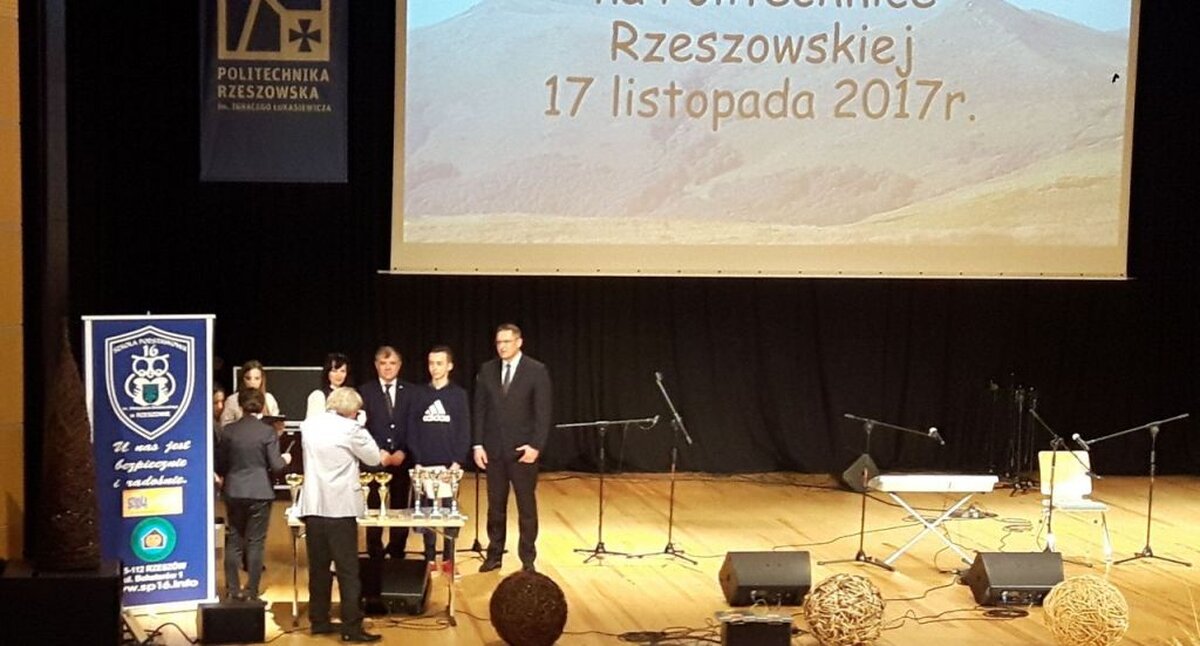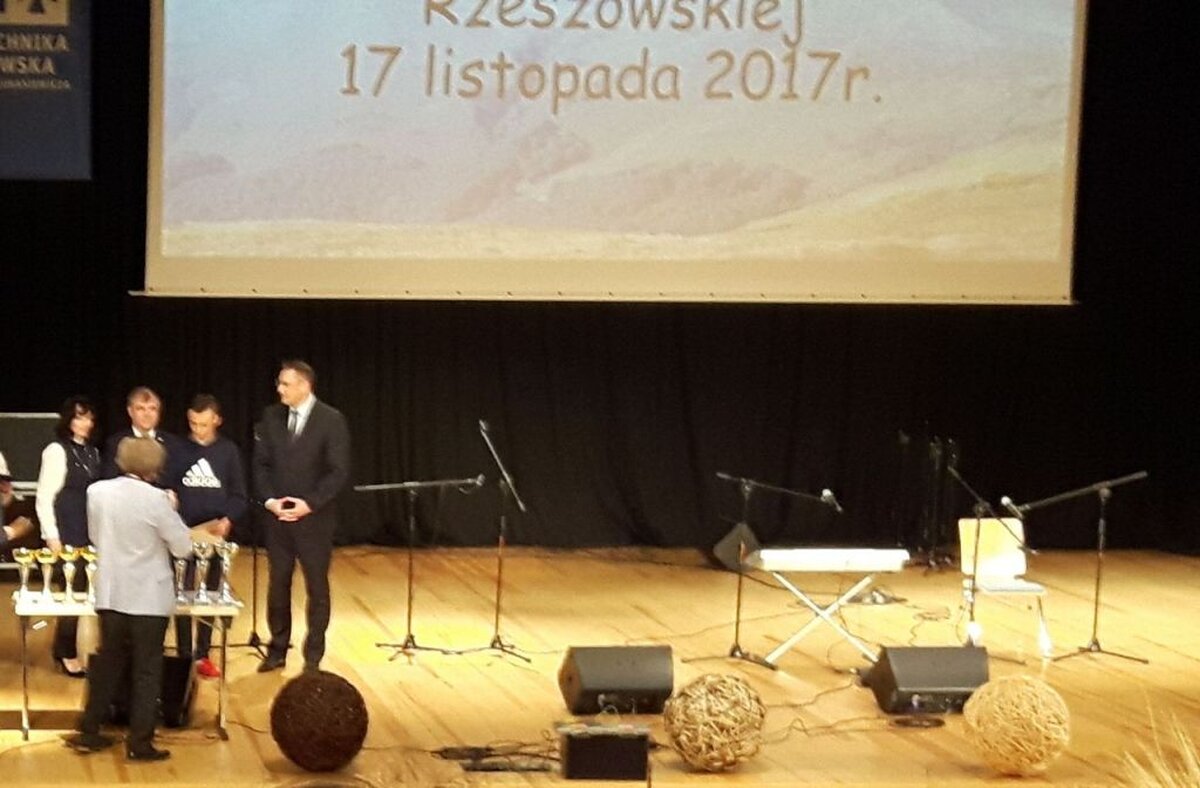 Miło nam poinformować, że uczeń klasy 2d gimnazjum Adrian Antosz zdobył III miejsce w powiatowym konkursie pt. „Jesienią góry są najszczersze”. Patronat nad tegorocznym konkursem sprawował Wojewoda Podkarpacia, Marszałek Województwa Podkarpackiego, Prezydent Miasta Rzeszowa oraz Rektor Politechniki Rzeszowskiej. Adrian wykonał bardzo ciekawą prace plastyczną farbami spray. Wręczenie nagród odbyło się podczas Dnia Bieszczadzkiego organizowanego przez Stowarzyszenie „Natchnieni Bieszczadem”, Szkołę Podstawową nr 16 w Rzeszowie, Politechnikę Rzeszowską oraz Ruch Miejski „Rzeszów Smart Citi”.