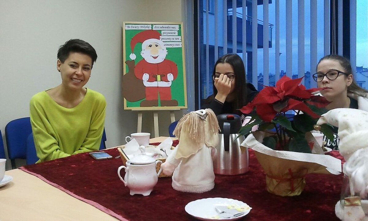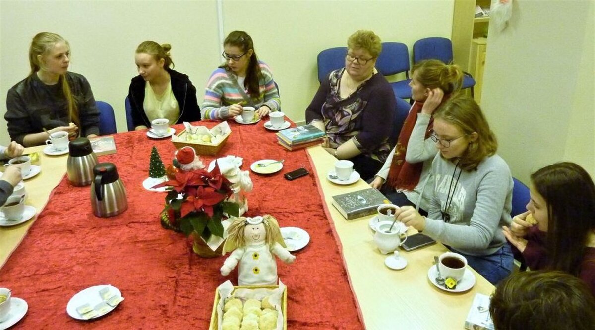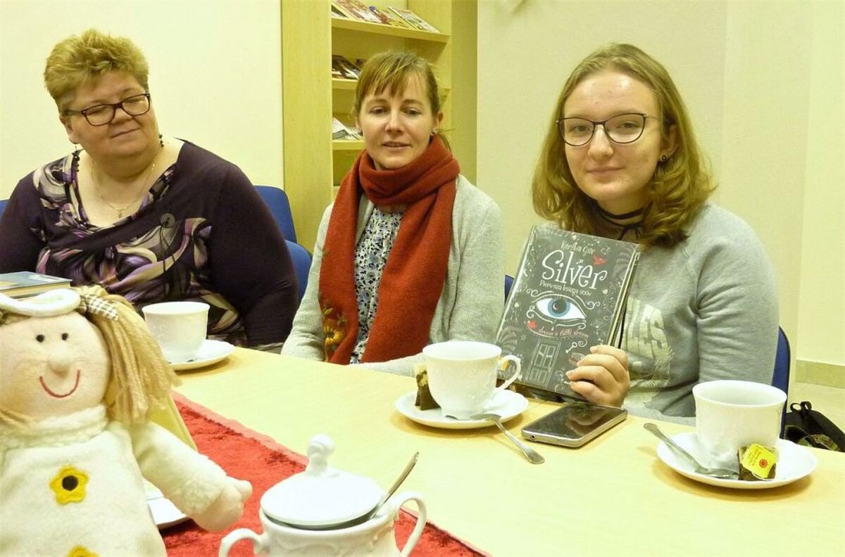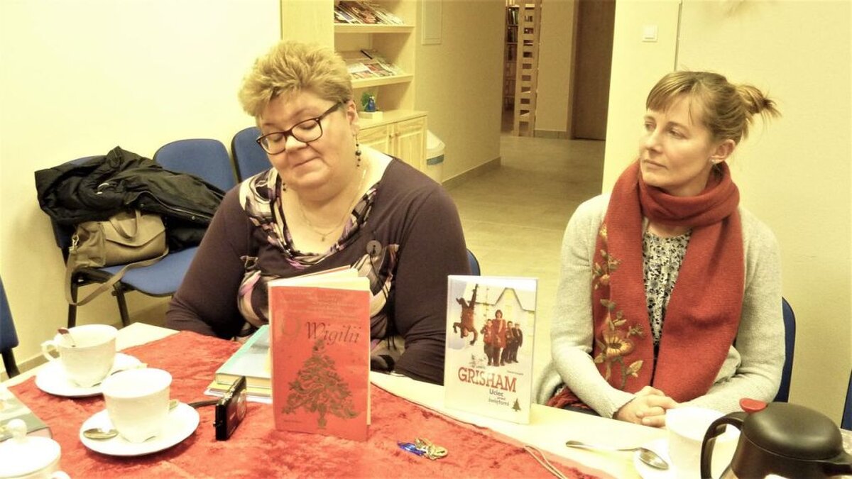 Zostaliśmy bardzo miło ugoszczeni przez p. Beatę Terlicką, która jest kierownikiem tej placówki. Popijając herbatę i zajadając ciastka upieczone specjalnie na tę okazję przez p. Beatę, rozmawialiśmy o tym, jakie książki warto przeczytać w czasie świąt.
