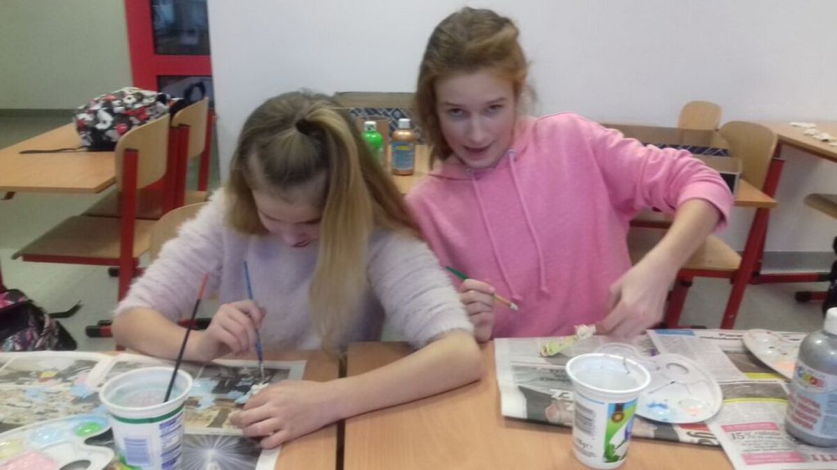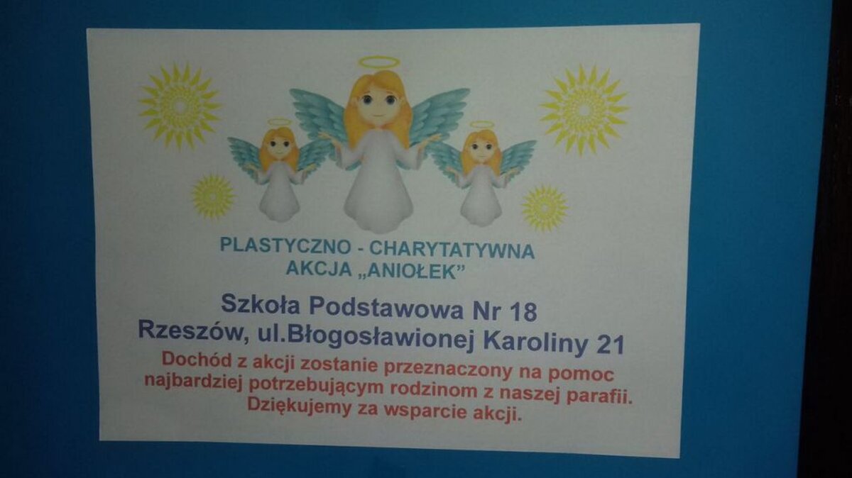 „Anielskie” klimaty panowały na pozalekcyjnych zajęciach plastycznych, prowadzonych przez panią Elę Ficek, od października. Bo już wtedy ruszyła plastyczno – charytatywna Akcja „Aniołek”. Grupa fantastycznych dziewczyn z klas 4 – 6 i oddziałów gimnazjalnych ( a! … był jeden męski „rodzynek”… też fantastyczny!) bardzo mocno zaangażowała się w tą pracę. Powstały przepiękne ozdoby choinkowe, które 10 grudnia sprzedawaliśmy podczas kiermaszu w kościele pod wezwaniem Błogosławionej Karoliny. Dochód z tej akcji przeznaczony jest na przedświąteczną pomoc potrzebującym rodzinom z parafii. Bardzo serdecznie dziękujemy wszystkim, którzy wsparli naszą akcję kupując aniołki. A pani Ela Ficek ( inicjatorka tej akcji) dziękuje wszystkim uczniom, którzy poświęcili swój czas i wykazali się ogromną empatią i talentami plastycznymi! Pięknych i spokojnych świąt Bożego Narodzenia!!!