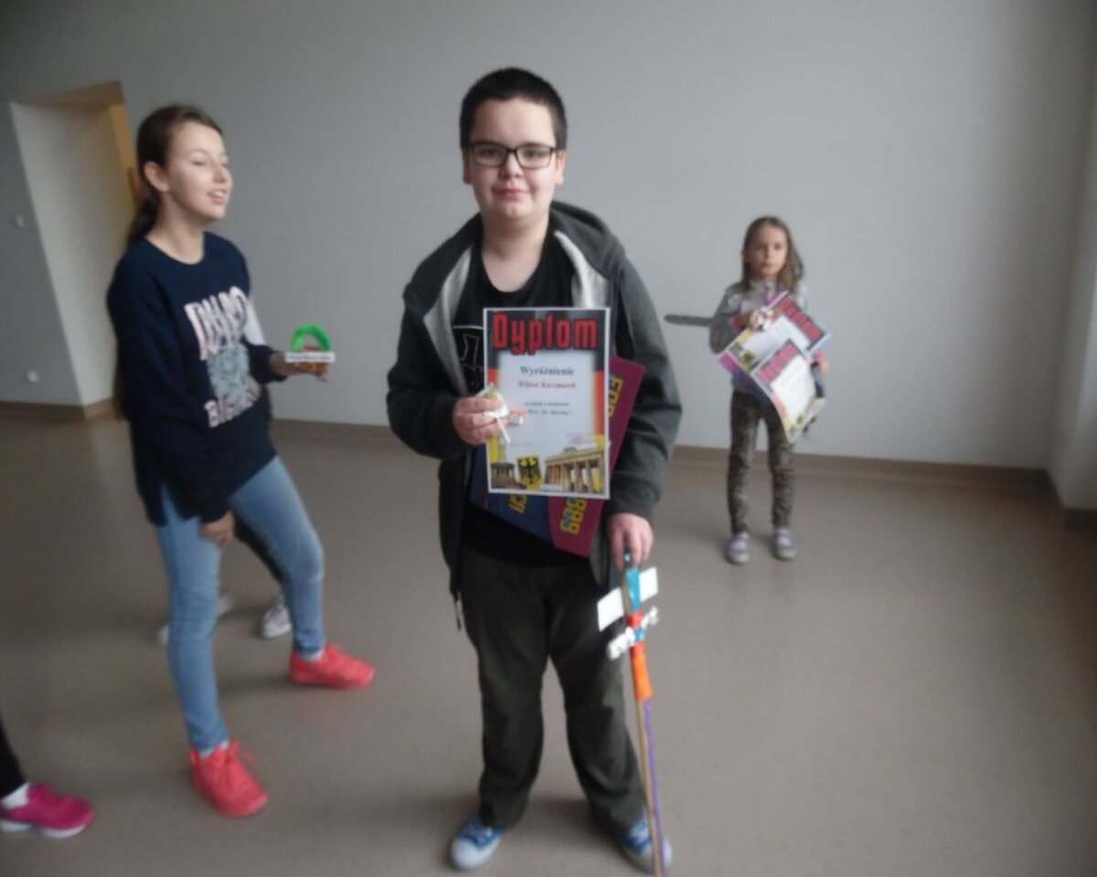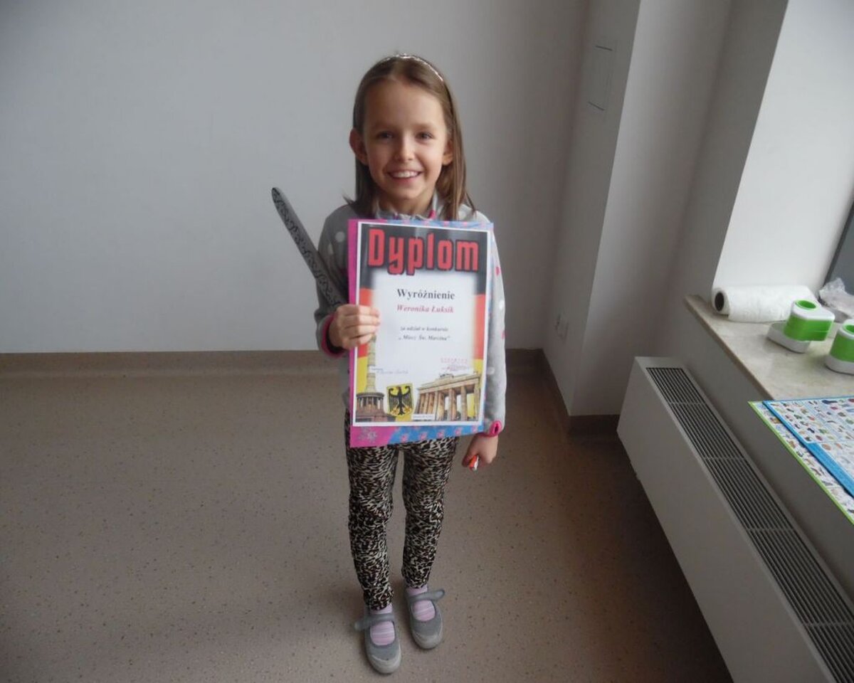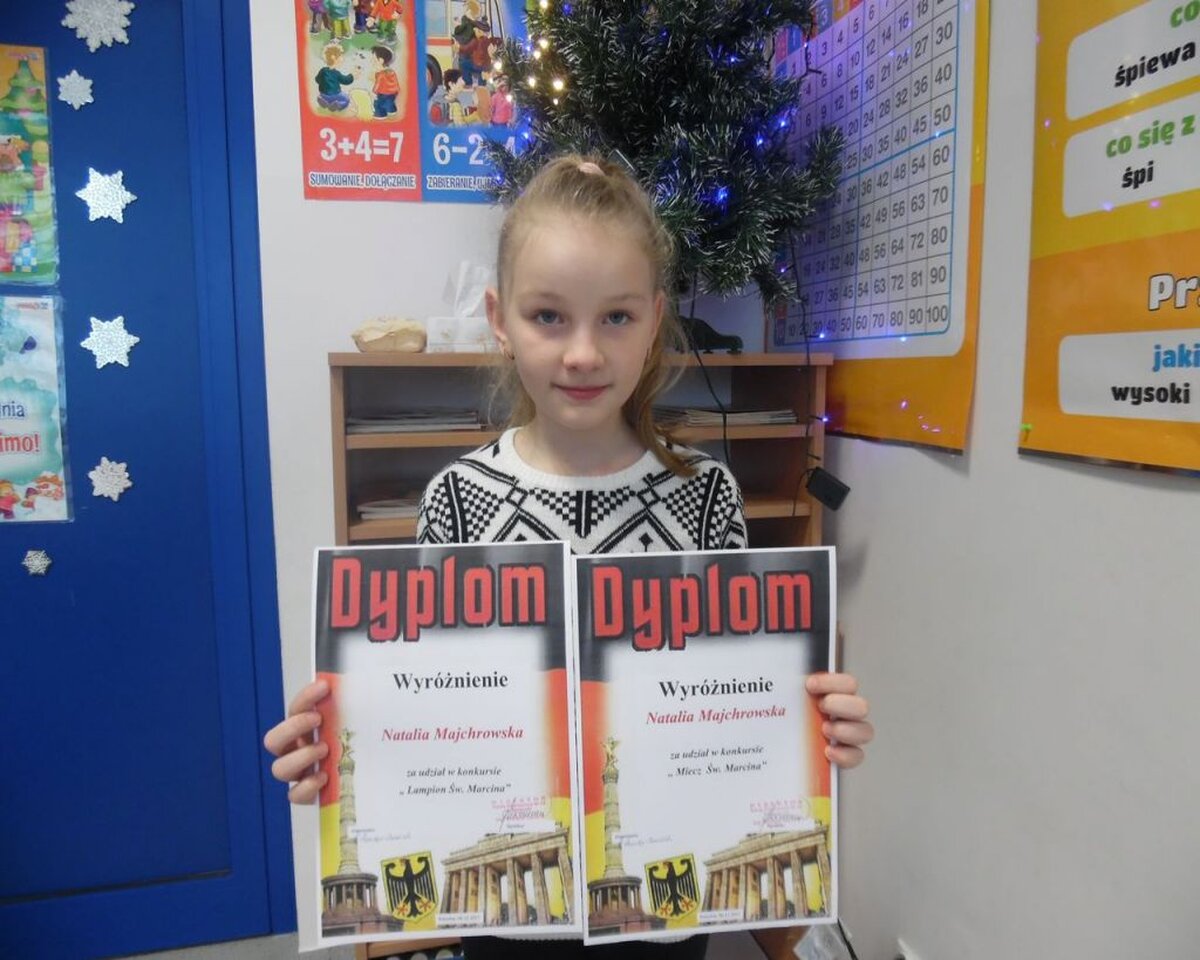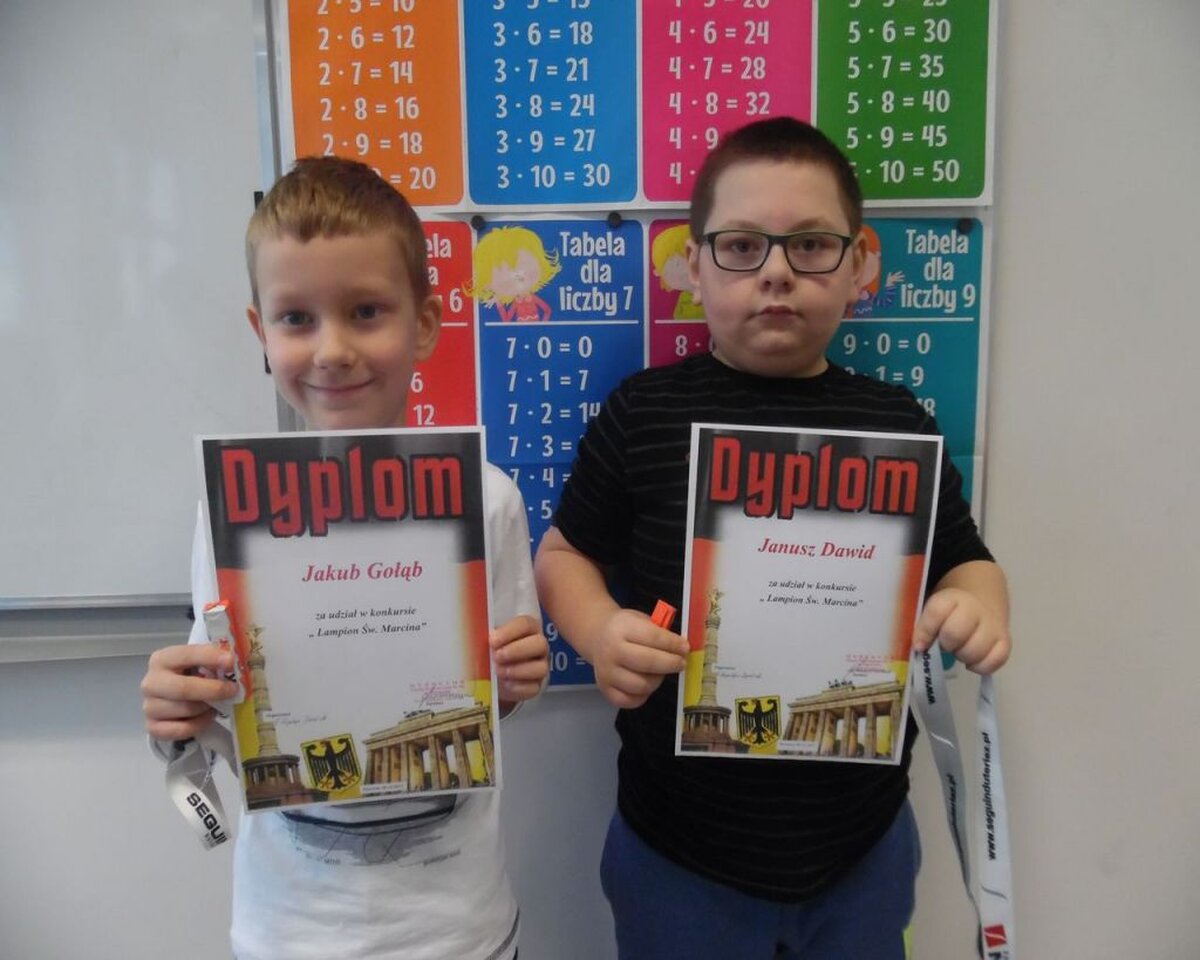 W związku z obchodzonym w naszej szkole Dniem Św. Marcina, zorganizowane były dwa konkursy: na najpiękniejszy Lampion i Miecz Św. Marcina. Jest to tradycja wywodząca się z Niemiec i Austrii. Z tej okazji w Niemczech organizowane są liczne pochody. Dzieci z pięknymi kolorowymi lampionami wędrują w towarzystwie dorosłych przez ulice miast, na czele jedzie św. Marcin w czerwonej pelerynie na koniu z mieczem. Dzięki zapałowi uczniów i pomocy Rodziców szkołę zdobiło 23 lampiony i 11 mieczy.