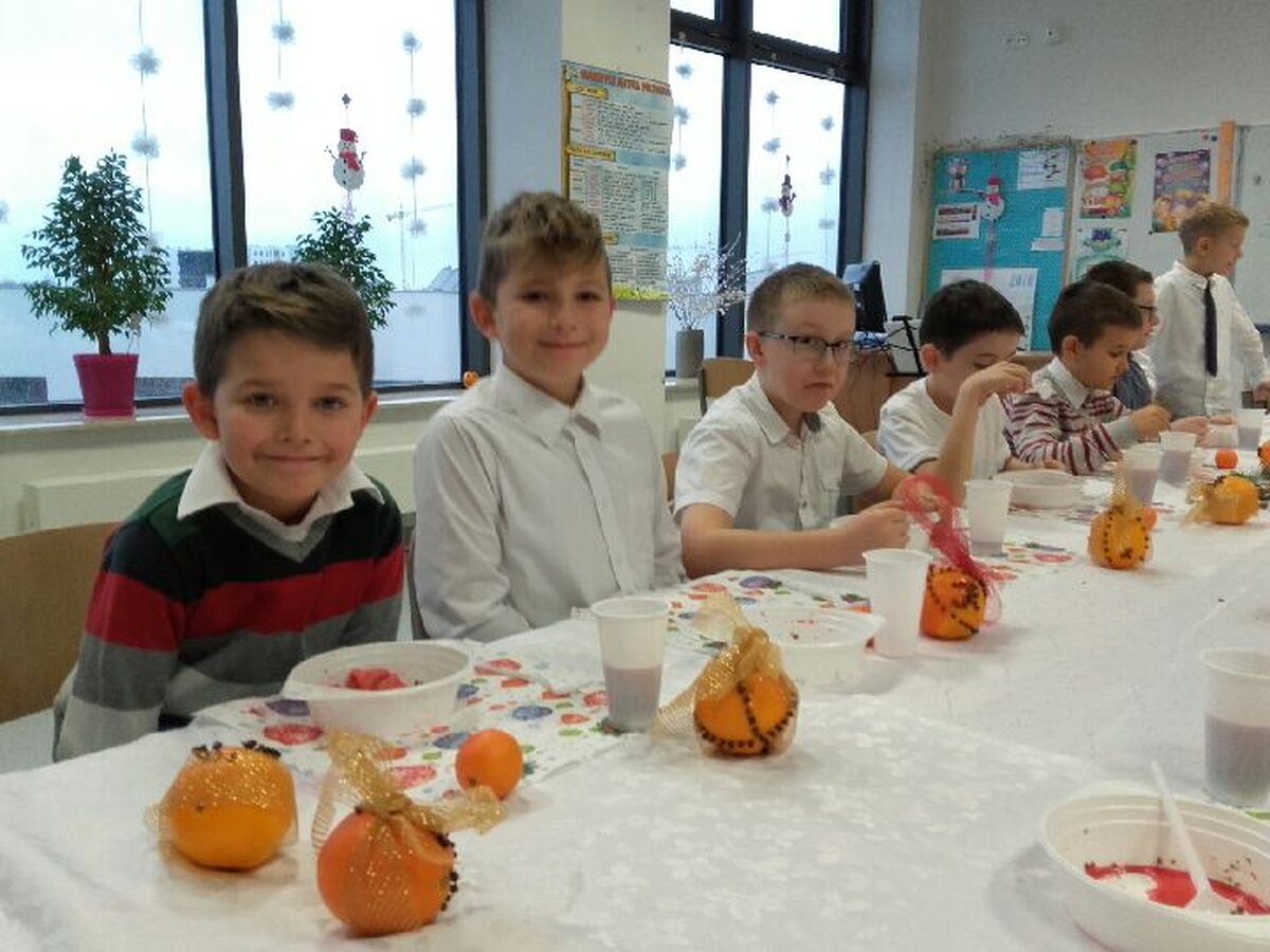 W takiej atmosferze przygotowywaliśmy się do nadchodzących Świąt Bożego Narodzenia. Uczniowie klas IV pod opieką p. Natalii i p. Patrycji przedstawili nam piękne jasełka. Ich występ dopełniły kolędy w wykonaniu naszego szkolnego chóru. To był niezapomniany i wzruszający wieczór, podczas którego mogliśmy wszyscy – nauczyciele, pracownicy oraz przedstawiciele rodziców i uczniów – zatrzymać się choć na chwilę, usiąść razem, połamać się opłatkiem i złożyć sobie życzenia.