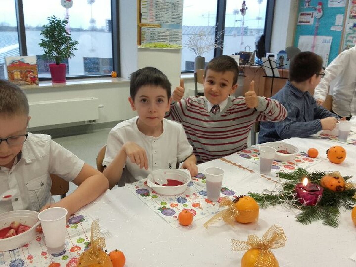 Równie wzruszające były klasowe wigilie – stoły dekorowane, uczniowie pięknie ubrani i te chwile łamania się opłatkiem oraz składania sobie życzeń. To cudowne, niezapomniane i najważniejsze przeżycia całej społeczności szkolnej. One łączą i dają siłę na następne dni.