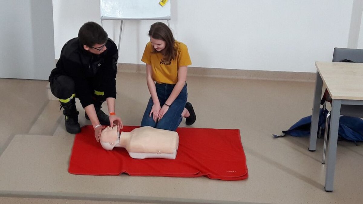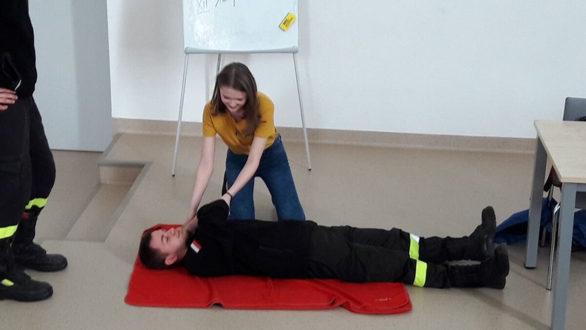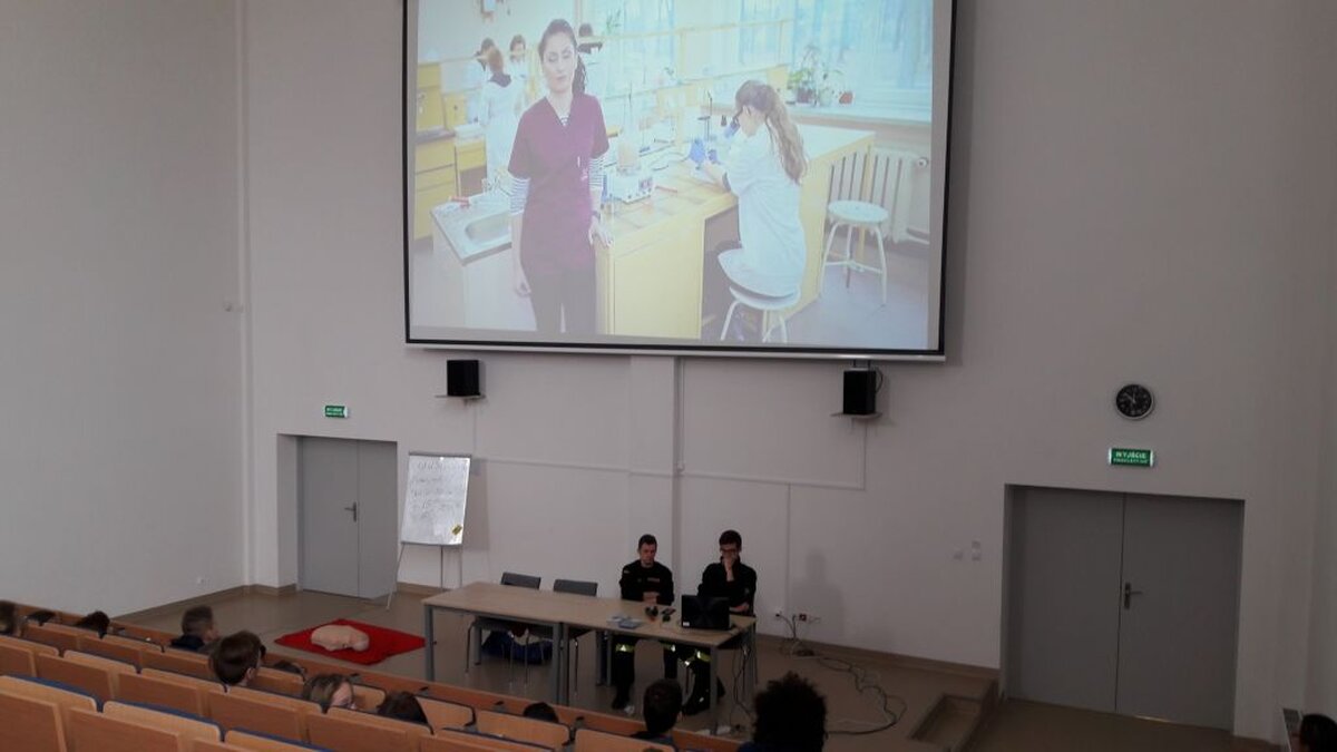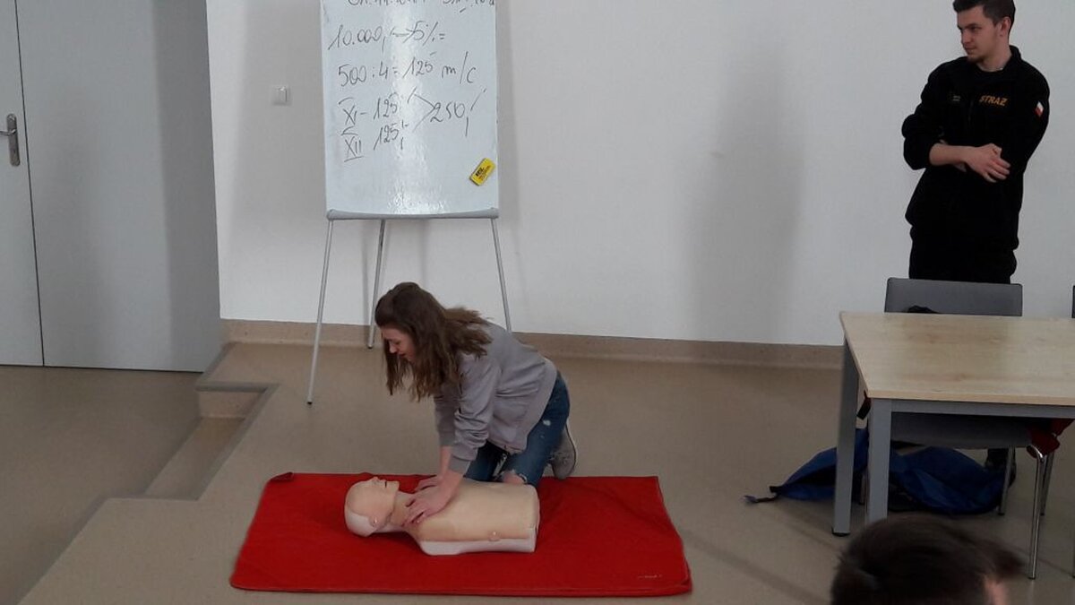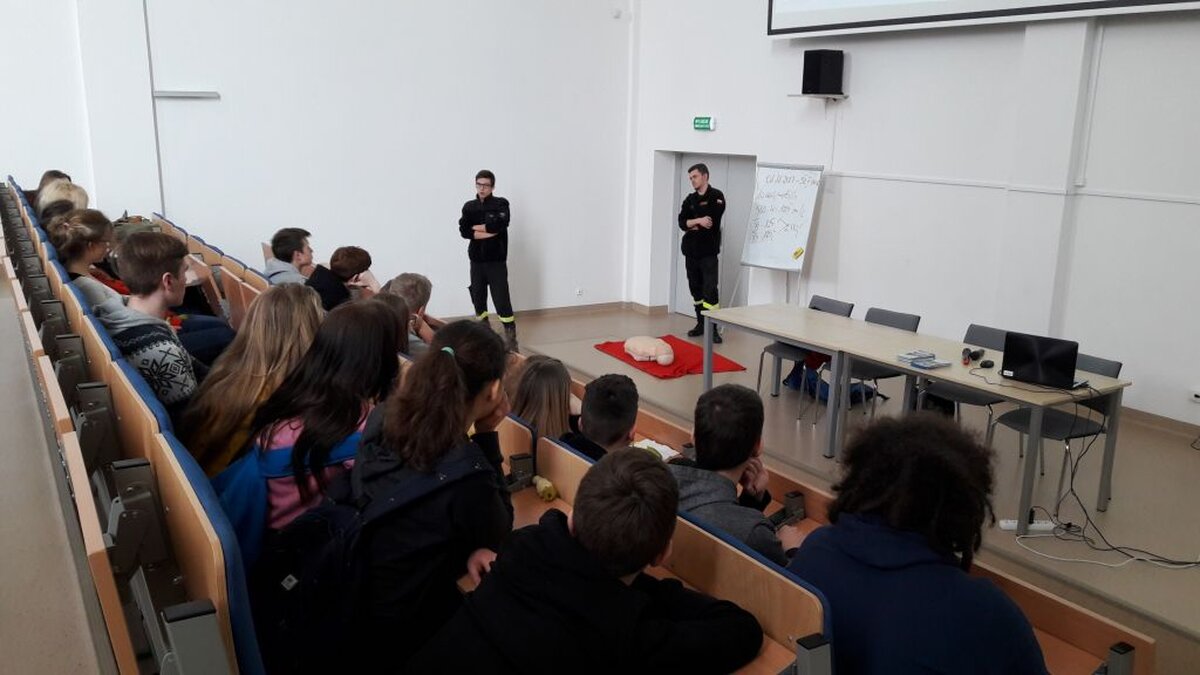 W dniu 26.03.2018 uczniowie klasy 3B gimnazjum uczestniczyli w ciekawej lekcji wychowawczej. Odwiedzili nas uczniowie Zespołu Szkół Techniczno – Weterynaryjnych w Trzcianie. Celem ich wizyty był pokaz pierwszej pomocy. Opowiedzieli oni i zademonstrowali jak należy postępować w różnych przypadkach w których zagrożone jest ludzkie życie. Uczniowie sami mogli ułożyć „poszkodowanego” w pozycji bezpiecznej bocznej czy wykonać zabieg resuscytacji. Nasi gimnazjaliści zapoznali się także z ofertą edukacyjną Zespołu Szkół Techniczno – Weterynaryjnych w Trzcianie. Kto wie, może wśród naszych uczniów są przyszli strażacy czy weterynarze?