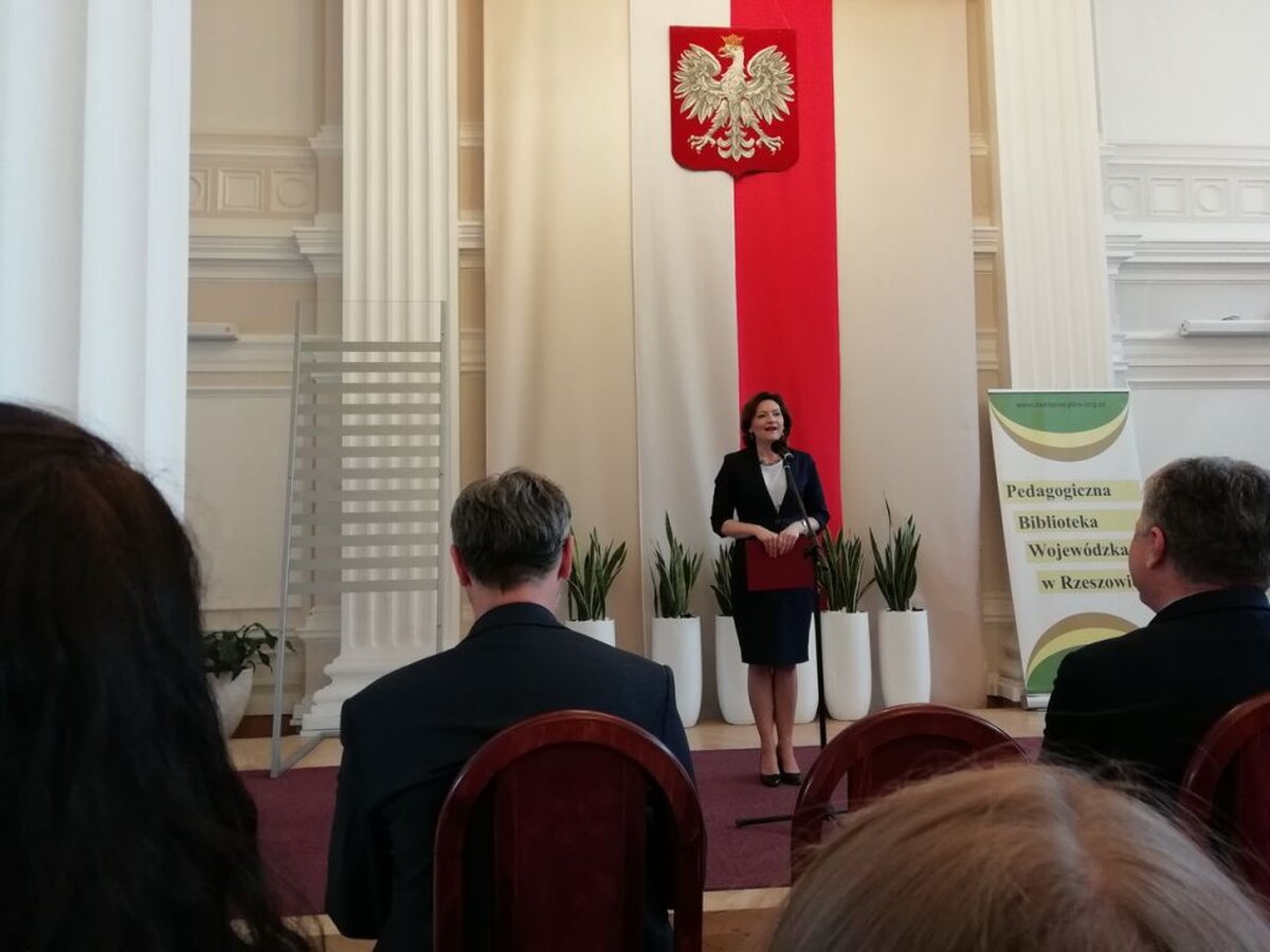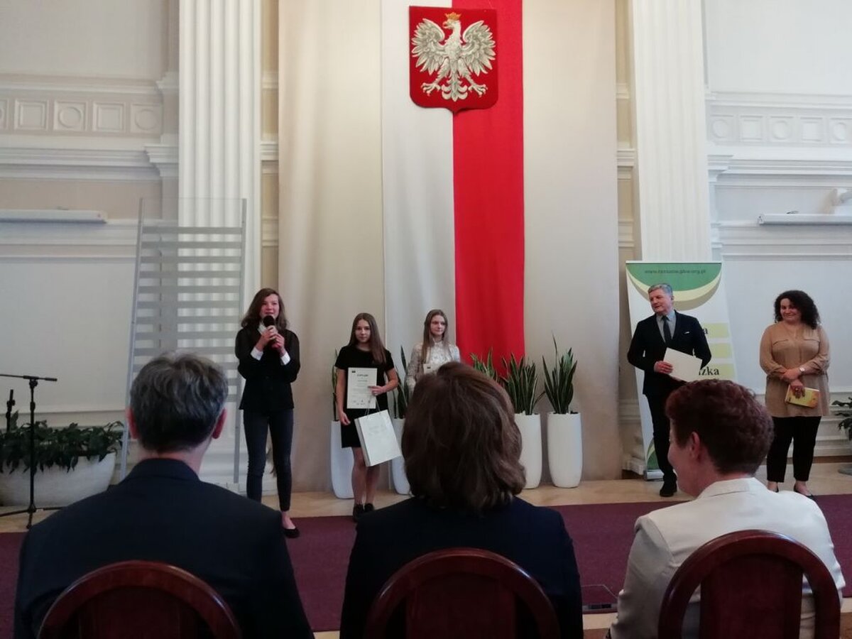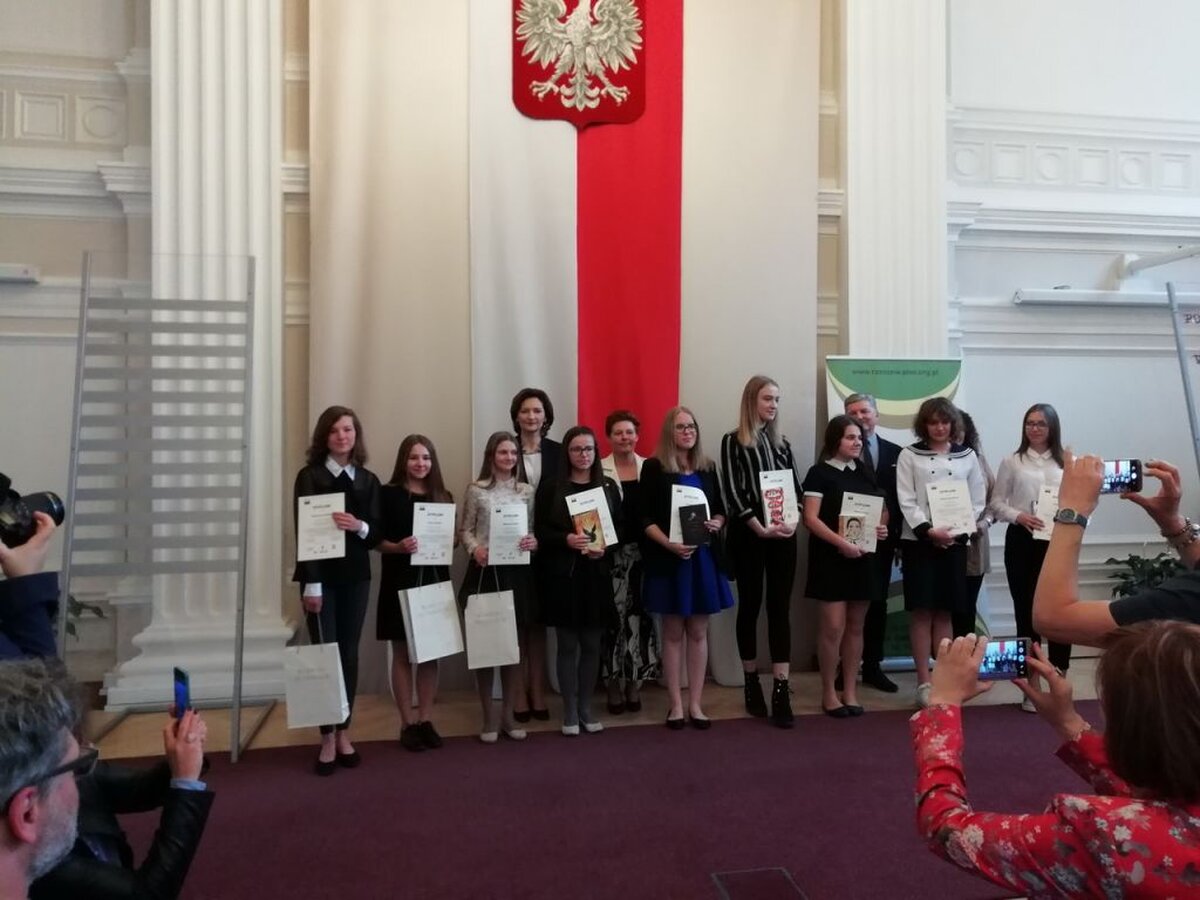 W dniu 26.04.2018r., w Sali Kolumnowej Urzędu Wojewódzkiego odbyła się uroczysta gala wręczenia nagród Laureatom i Wyróżnionym w tegorocznej edycji konkursu. W tym zacnym gronie znalazła się Kasia Bielak /opiekun dydaktyczny Anna Mikrut/, uczennica klasy II DG, która zajęła I miejsce i z dumą reprezentowała naszą szkołę. A było to niemałe przeżycie ponieważ mistrzowie słowa odebrali nagrody z rąk Pani Ewy Leniart-Wojewody Podkarpackiej, Pani Lucyny Brymory-Dyrektor Pedagogicznej Biblioteki Wojewódzkiej w Rzeszowie, Pana Bogusława Śnieżka-Kierownika w Departamencie Edukacji, Nauki i Sportu w Podkarpackim Urzędzie Marszałkowskim, Pana Stanisława Fundakowskiego-zastępcy Podkarpackiego Kuratora Oświaty, Pana Jana Niemaszka-dziennikarza, aktora i reżysera w Polskim Radiu Rzeszów oraz nauczycielek bibliotekarek PBW W Rzeszowie.