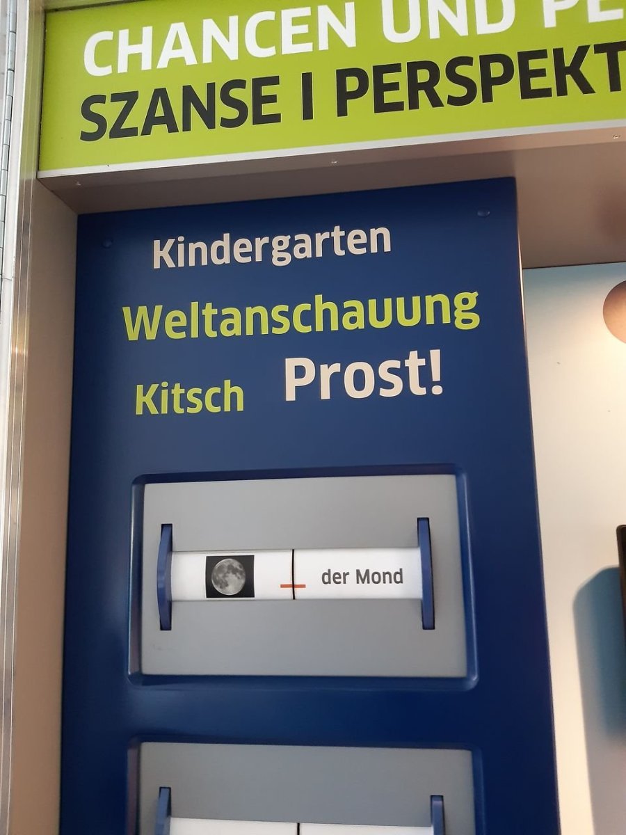 Drugi kufer poświęcony jest osobliwościom i pięknu języka niemieckiego. Na ekranie widać m.in. dłoń zapisującą jeden z wierszy miłosnych Goethego. Zwiedzający jako ciekawostkę poznają również, stojąc na wycieraczce przezwiska. Ostatnia część wystawy dotyczy nauki języka niemieckiego. Okazuje się, że prawie każdy zna już jakieś niemieckie słowa. Dzięki zabawie w przyjemny sposób można nauczyć się, kilku nowych niemieckich zwrotów.