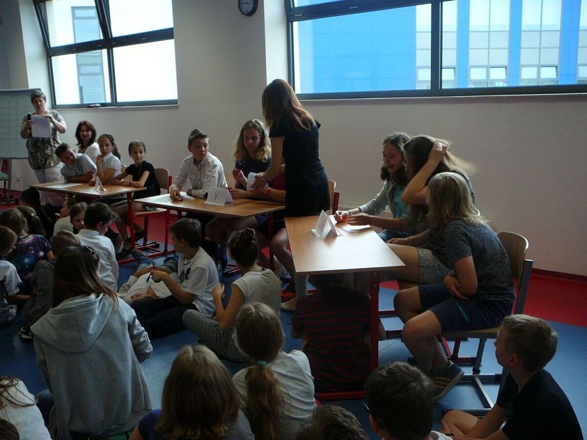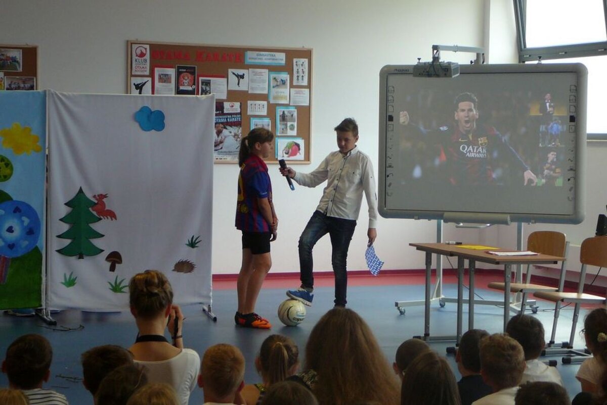W dniu 21.06.2016 odbył się w naszej szkole Dzień Języków Obcych. Zgromadzona młodzież na początku obejrzała przedstawienie „Czerwony Kapturek” w języku niemieckim przygotowane przez uczniów klasy 1a i 1b gimnazjum pod kierownictwem pani Ewy Augustyn-Ziemlińskiej. Następnie klasa 5a pracująca pod okiem pani Joanny Dzięgiel przedstawiła krótkie scenki w języku hiszpańskim. Kolejnym punktem programu było obejrzenie przez uczniów prezentacji multimedialnej na temat najważniejszych informacji i ciekawostek dotyczących Wielkiej Brytanii, Hiszpanii i Niemiec przygotowanej przez Wanesę Kidacką z klasy 1a gimnazjum. Po prezentacji przyszłą pora na quiz. Trzyosobowe zespoły z każdej klasy odpowiadały na pytania związane z Wielką Brytanią, Hiszpanią i Niemcami. Uczniowie wykazali się znakomitą wiedzą i na większość pytań odpowiadali bezbłędnie. Klasy 1a i 1b gimnazjum zajęły ex quo pierwsze miejsce. Wśród klas młodszych bezkonkurencyjna okazała się 4b, a 4a i 5a uplasowały się na zaszczytnym drugim miejscu. Ostatnim punktem programu było ogłoszenie wyników w konkursie „Wielka Brytania moimi oczami” i wręczenie nagród laureatom. To była udana uroczystość, bo języki obce są super!