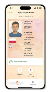 Wydawanie mLegitymacji do legitymacji plastikowej: