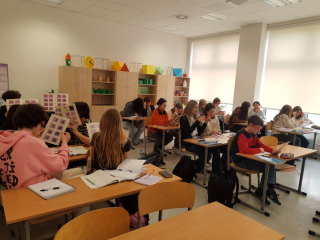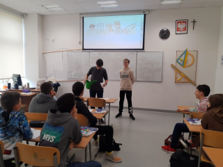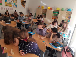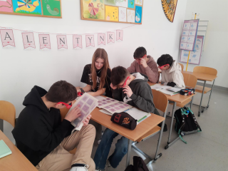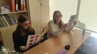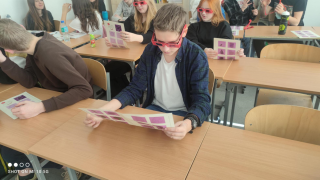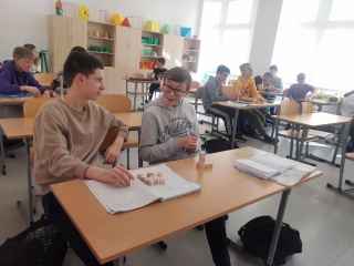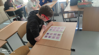 Pomogły im animacje i rysunki (ANAGLIFY) dające złudzenie trójwymiaru. Podczas oglądania anaglifów za pomocą specjalnych, czerwono-turkusowych okularów uczniowie dokładniej dostrzegli ważne cechy omawianych brył. Korzystali również z modeli klocków sześciennych zakupionych z projektu #LaboratoriaPrzyszłości. Ćwiczenia z możliwością samodzielnego konstruowania danej bryły pozwalają lepiej opanować omawiane pojęcia matematyczne. Uczniowie mogli też w praktyce sprawdzić zależność między objętością graniastosłupa i ostrosłupa przelewając wodę między modelami tych brył, a także składając model sześcianu z trzech jednakowych modeli ostrosłupów.