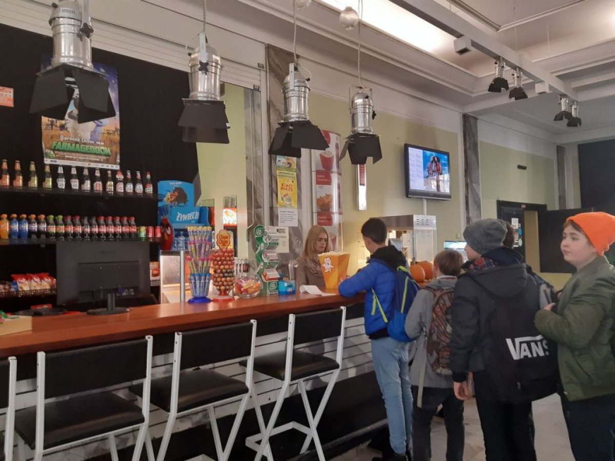 Atmosfera kina: popcorn, orzeszki sprawiają, że uczniowie miło spędzają czas, a przy okazji zdobywają nowe umiejętności językowe.