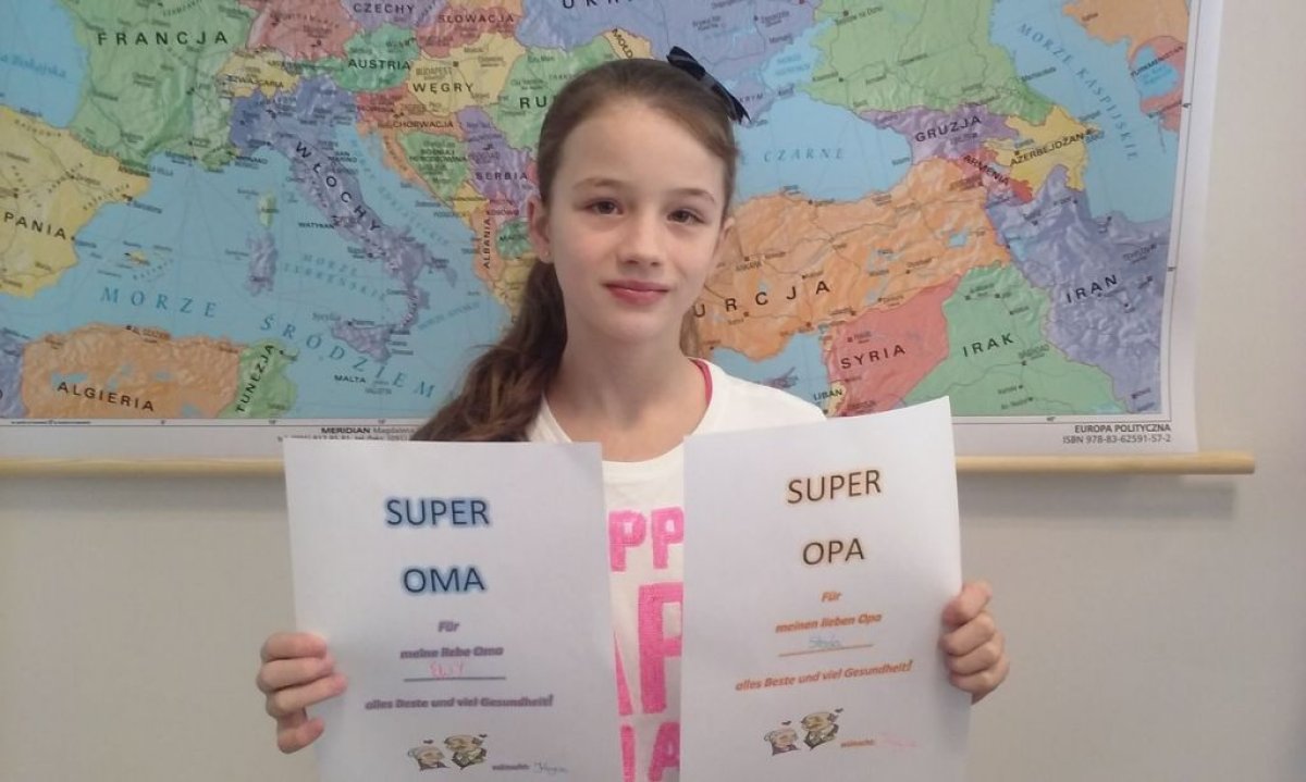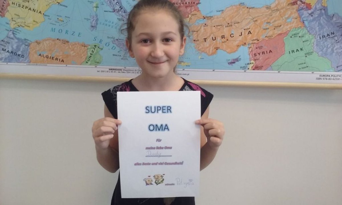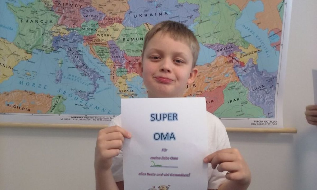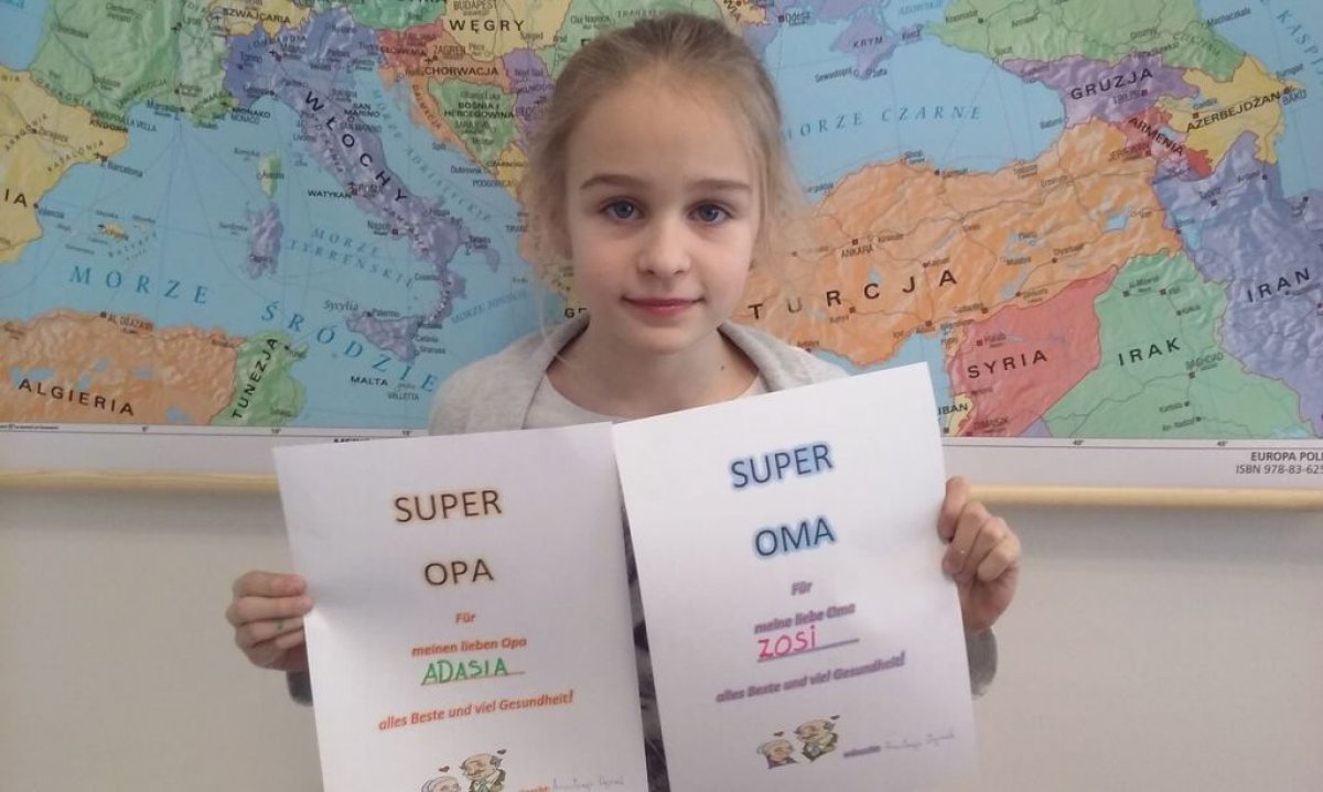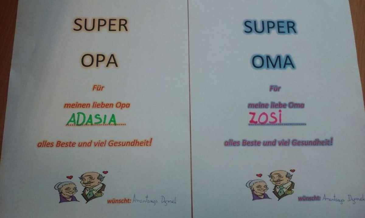 Dzisiaj na lekcji języka niemieckiego uczniowie klasy 4b nie zapomnieli o tak ważnym Dniu Babci i Dziadzia. Każdy z uczniów wykonał piękną laurkę oczywiście w języku niemieckim.