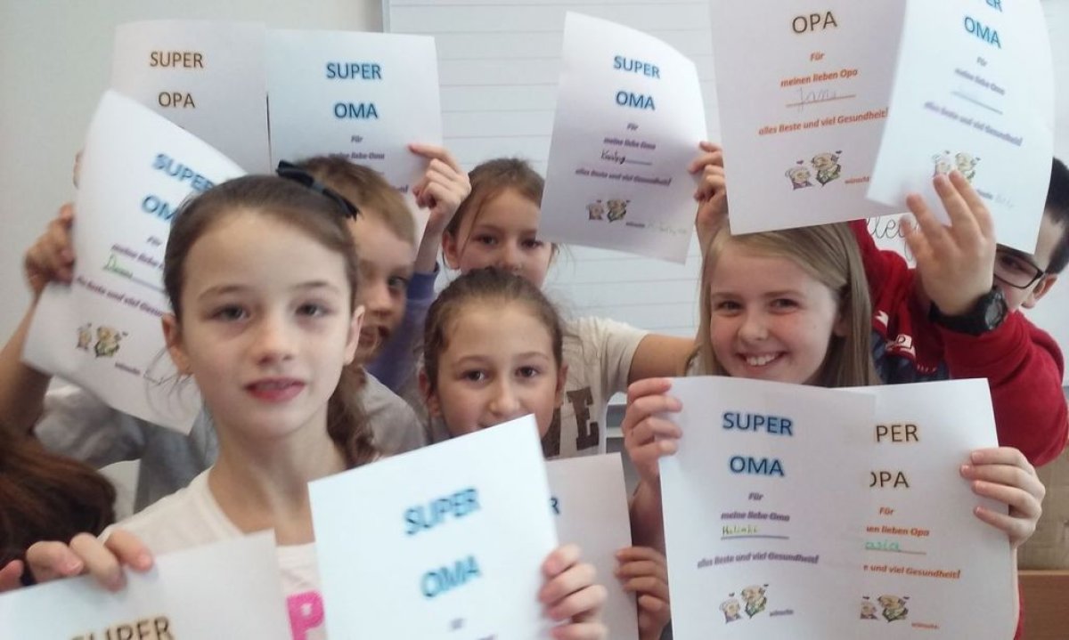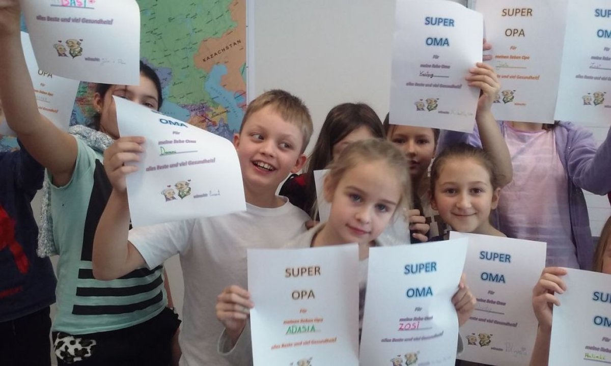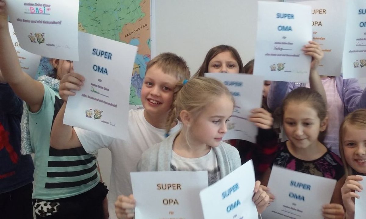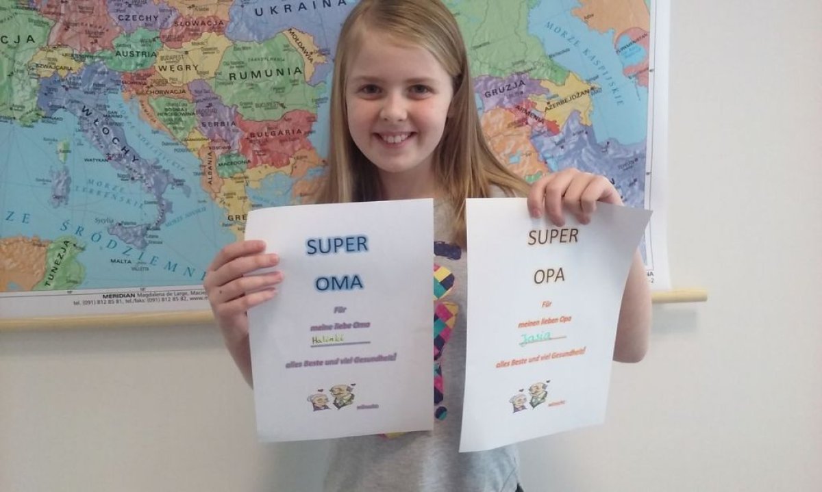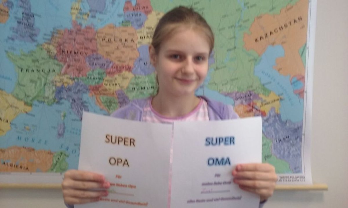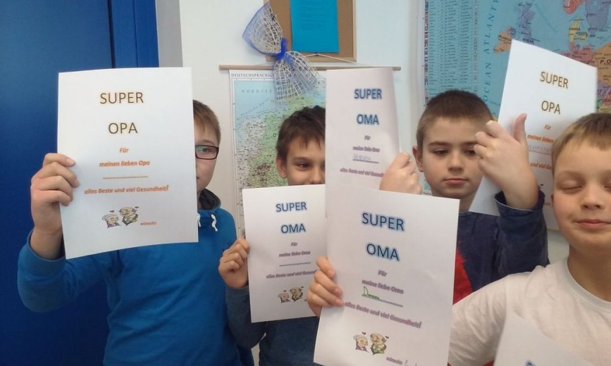 Dzisiaj na lekcji języka niemieckiego uczniowie klasy 4b nie zapomnieli o tak ważnym Dniu Babci i Dziadzia. Każdy z uczniów wykonał piękną laurkę oczywiście w języku niemieckim.