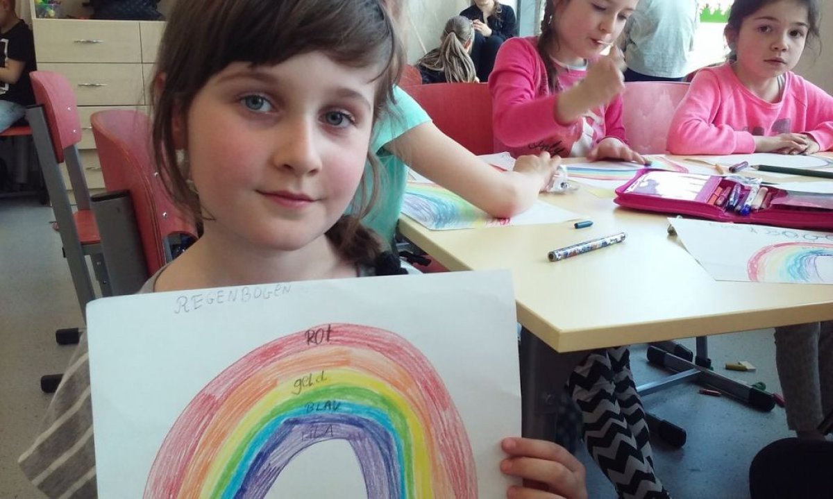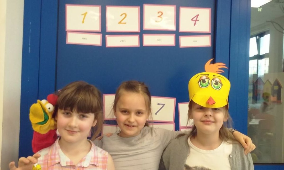 To zadziwiające z jaką łatwością dzieci uczą się języków obcych. Zajęcia oferowane na świetlicy polegają na nauce języka niemieckiego poprzez stosowanie różnorodnych form aktywności, m.in.: zabawę, gry językowe, piosenki, wierszyki, rymowanki, zgadywanki. Nieodłącznym towarzyszem dzieci w czasie zajęć jest mała pluszowa pacynka o imieniu Rudolf, która pomaga uczniom przełamywać jakikolwiek strach. Dotychczas nauczyliśmy się witać , przedstawiać, liczyć do 12, słownictwa związanego z członkami rodziny, kolorami. Uczniowie poznali też tradycje wielkanocne w Niemczech.