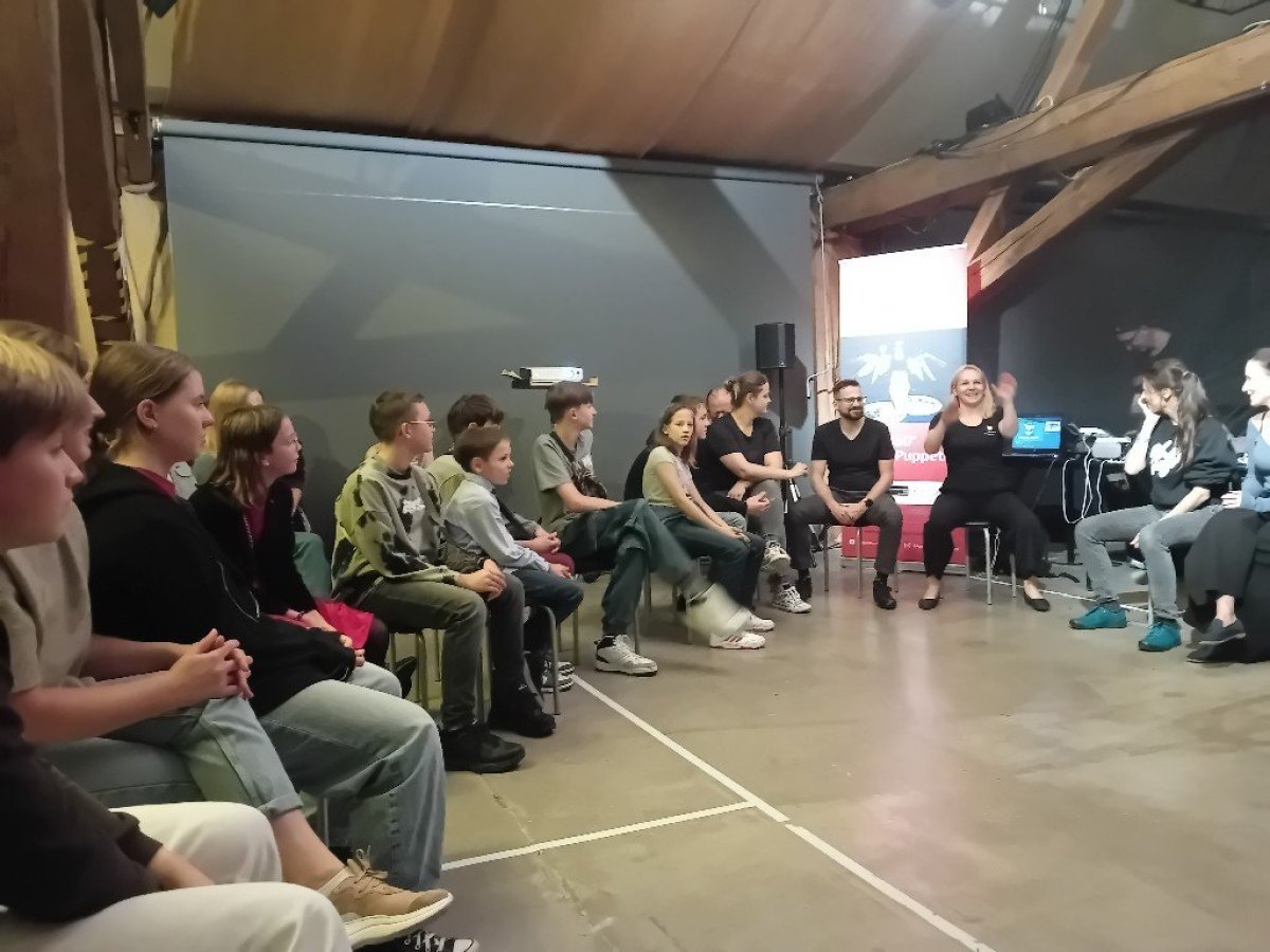Po przedstawieniu odbyła się rozmowa z Panią reżyser Moniką Gerboc i aktorami, opowiadali oni o etapach powstawania sztuki, swoich doświadczeniach.