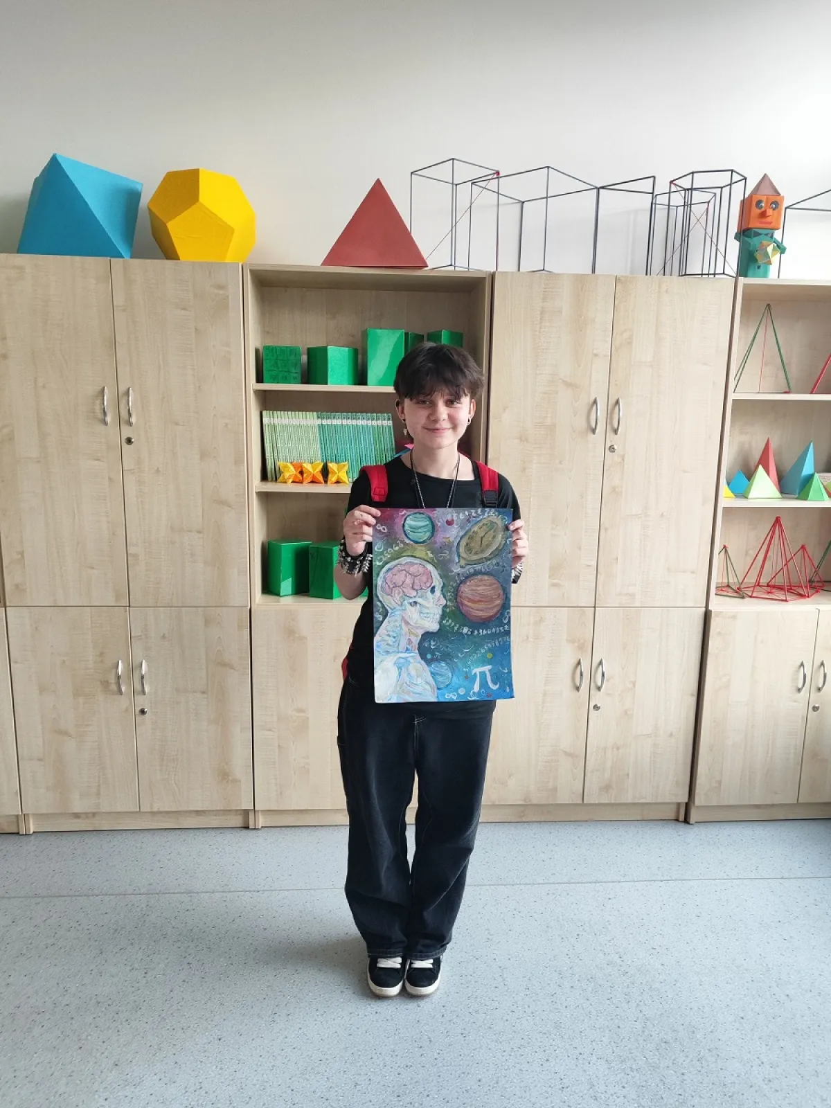 Weronika Parol, uczennica klasy 8e zdobyła II miejsce w "I Międzyszkolnym Konkursie z okazji Dnia Liczby Pi dla klas VIII SP" organizowanym przez SMS Stal Rzeszów . Weronika przygotowała pracę plastyczną pt. „Nieskończona tajemnica liczby π” przedstawiającą jej wizję jednej z najbardziej fascynujących wartości liczbowych w świecie.