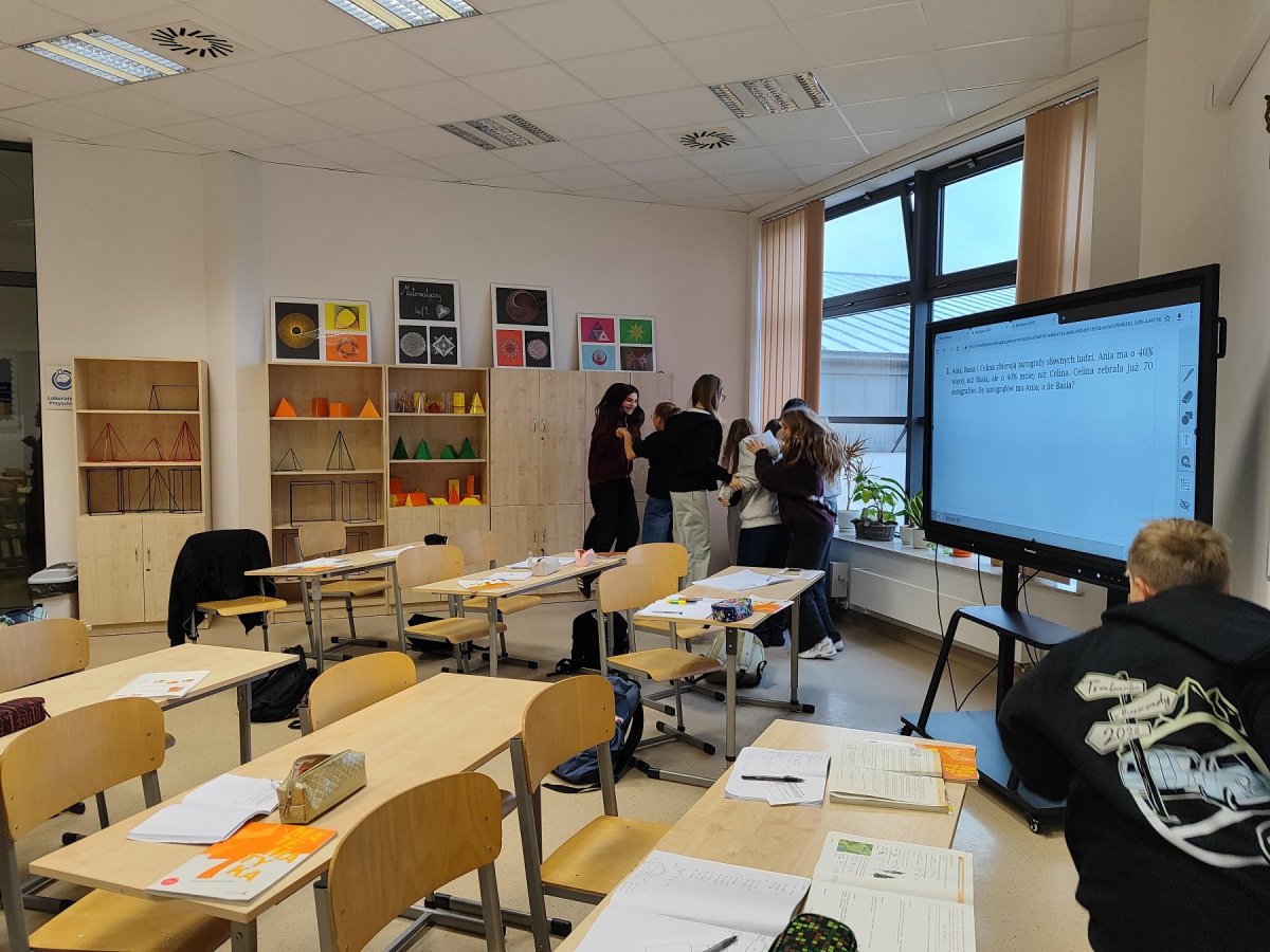 Zadanie polegało na zmierzeniu własnego pulsu w spoczynku oraz po drobnym wysiłku fizycznym. Zatem nasi uczniowie podczas lekcji matematyki biegali, skakali, wykonywali różnorodne ćwiczenia, aby podnieść wskaźnik tętna. Następnie szukali odpowiedzi na pytanie: o ile procent wzrosło twoje tętno?