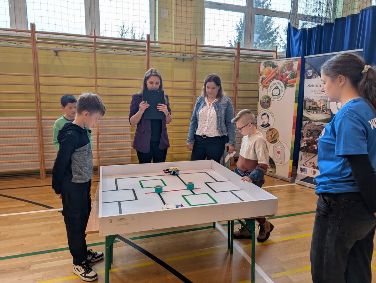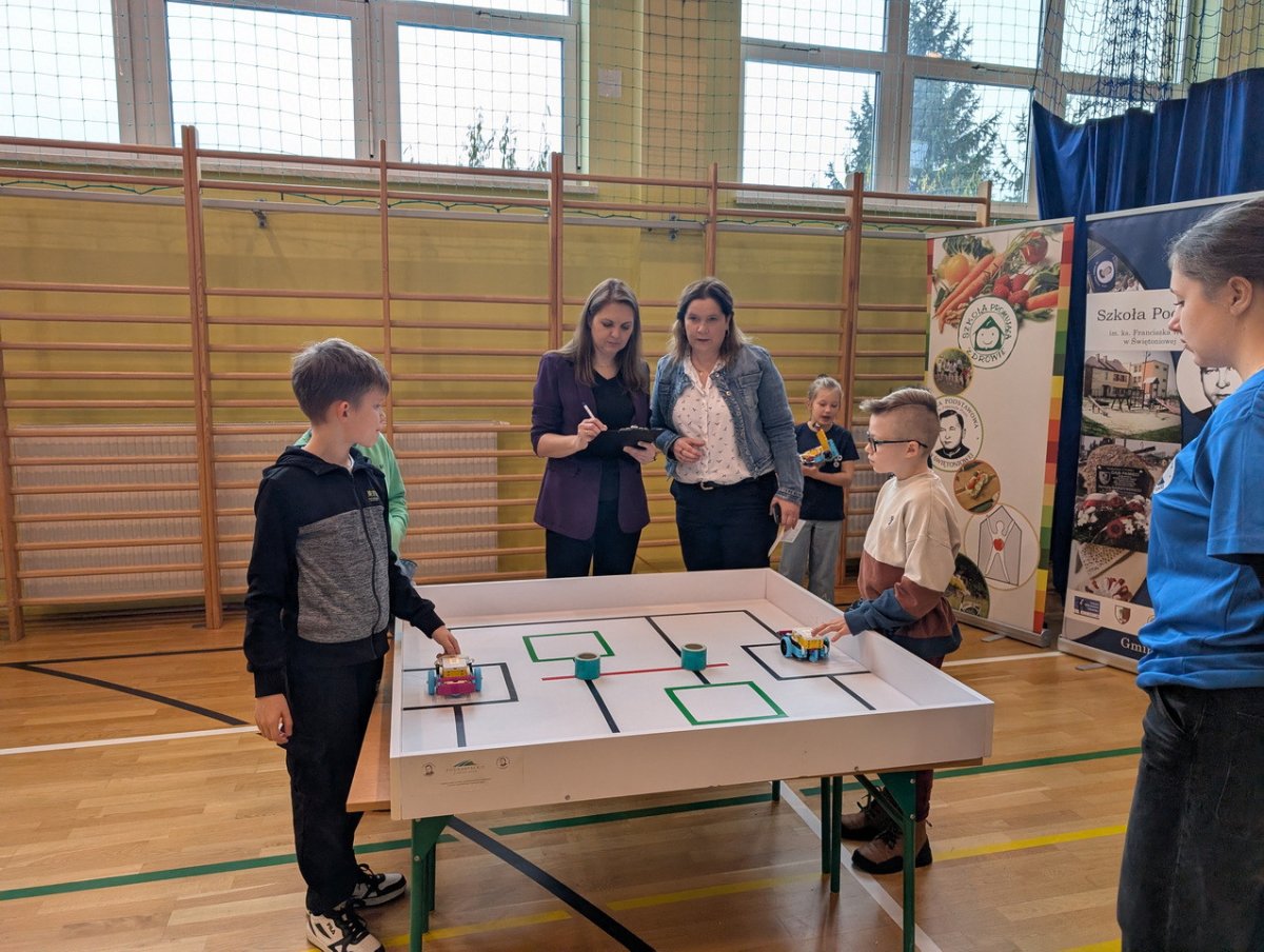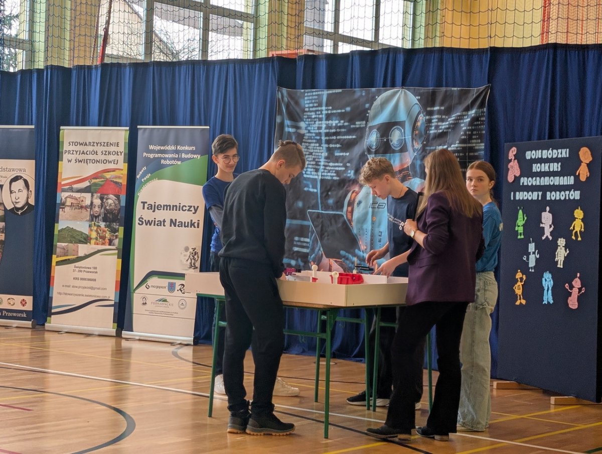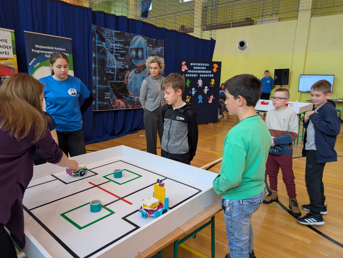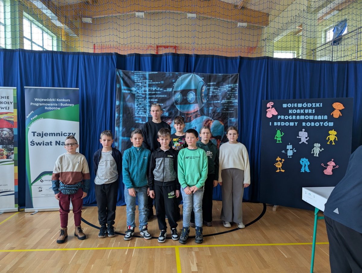 25 listopada 2025 r. uczniowie naszej szkoły wzięli udział w IV Wojewódzkich Zawodach Programowania i Budowy Robotów „Tajemniczy świat nauki”. Wydarzenie odbywało się w trzech kategoriach wiekowych: klas 1–3, klas 4–6 oraz klas 7–8, a uczestnicy rywalizowali w zadaniach wymagających kreatywnego myślenia, logicznego planowania oraz precyzyjnego programowania.