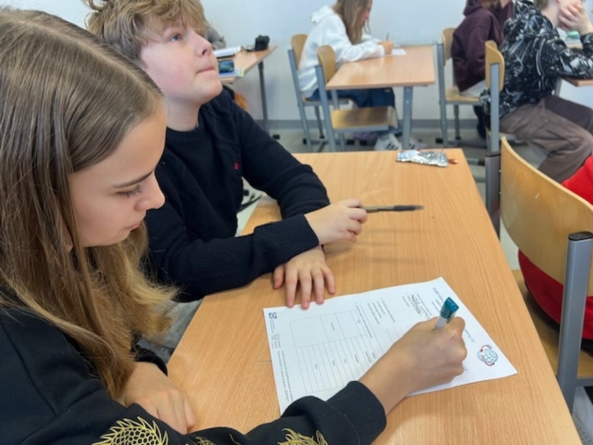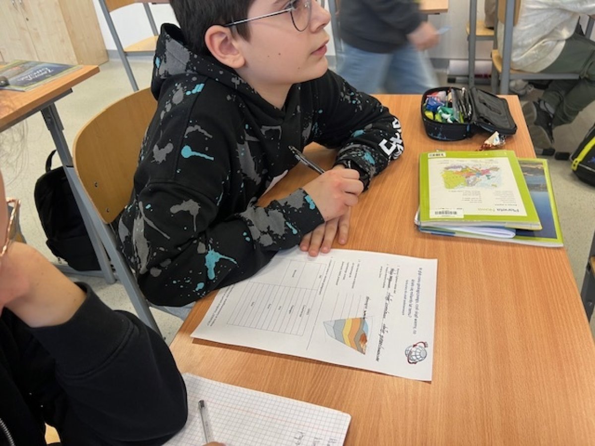 Podczas lekcji uczniowie poznali budowę wnętrza Ziemi, dowiedzieli się o dziejach naszej planety oraz odkryli, jakie metody stosuje się do datowania wieku skał. Informacje były na tyle ciekawe, że uczniowie z zaangażowaniem rozwiązywali przygotowane karty pracy, wykorzystując świeżo zdobytą wiedzę.