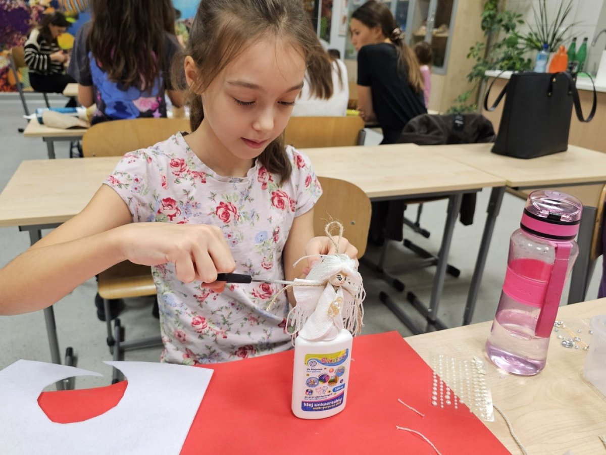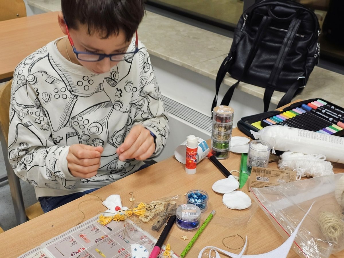 W pierwszych dniach grudnia w naszej szkole odbyły się Rodzinne Warsztaty Bożonarodzeniowe zorganizowane przez Klub Kulturka. Tematem tegorocznych zajęć były aniołki na choinkę. Wykonywaliśmy je ze sznurków, włóczki, wacików kosmetycznych, filcu i różnych błyszczących dodatków.