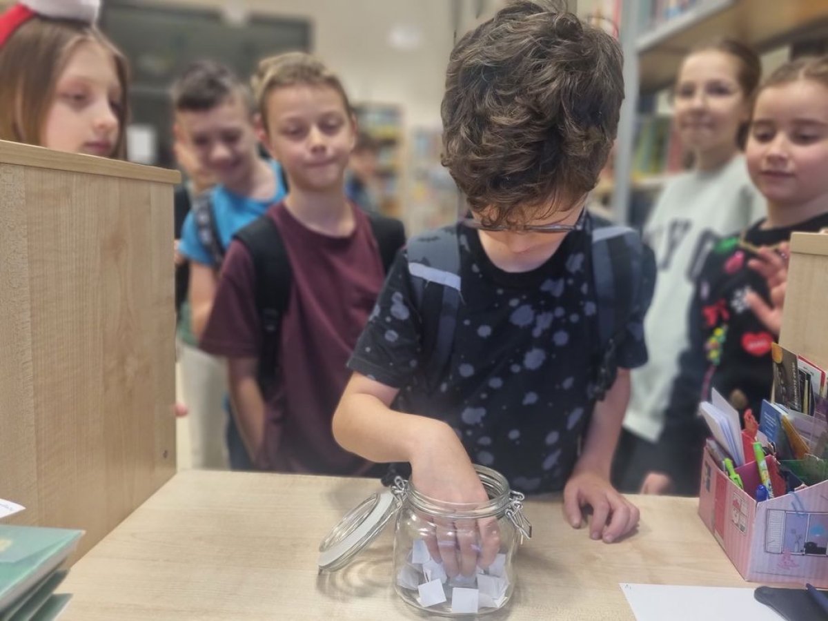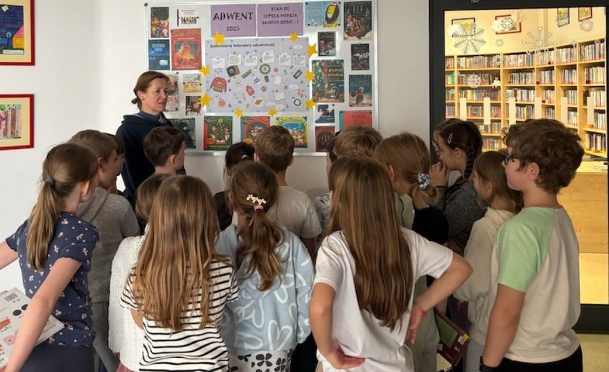 Jak co roku w adwencie biblioteka przygotowała szereg atrakcji. Codziennie o 7.30 ruszało losowanie numerka dnia, a szczęśliwiec mógł otworzyć okienko w kalendarzu adwentowym i zjeść ukrytą tam czekoladkę. Był też drugi kalendarz, tym razem z poleceniami, gdzie codziennie pojawiało się nowe zadanie (np. „Uśmiechnij się dziś do co najmniej 10 osób”, „Powiedz komuś coś miłego”), a wszystko po to, by stać się lepszą wersją samego siebie. Rozmawialiśmy też o książkowych kalendarzach adwentowych, które poprzez opowieści w 24 rozdziałach codziennie przygotowują nas do świąt.