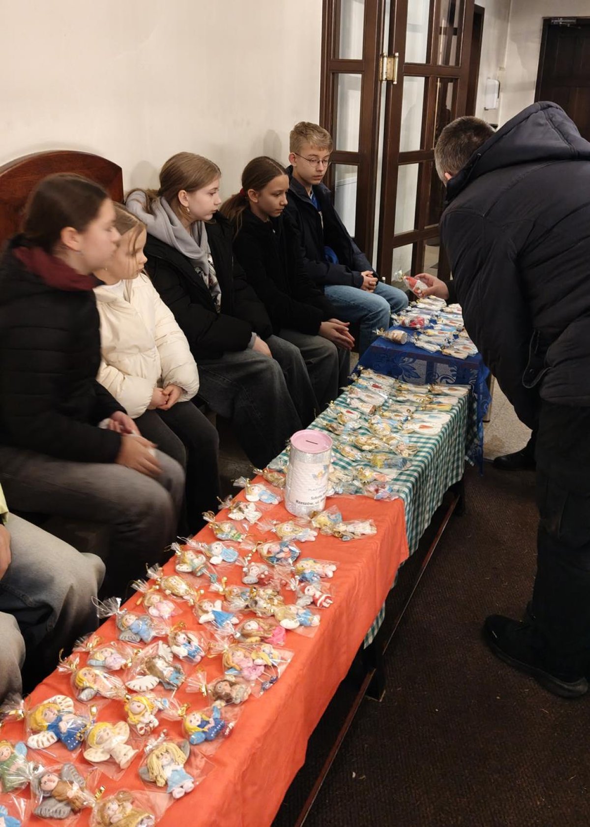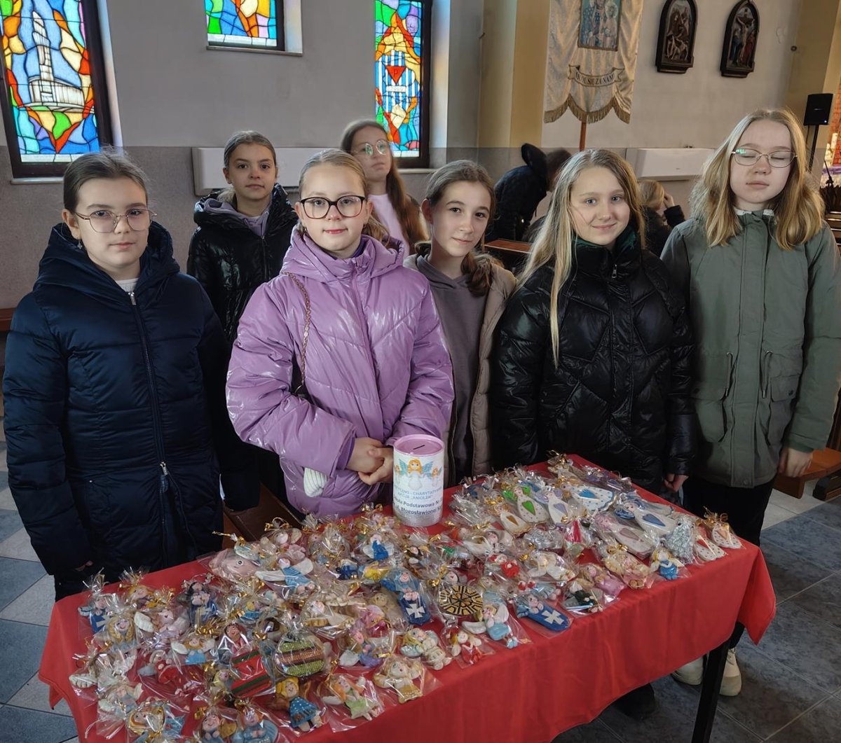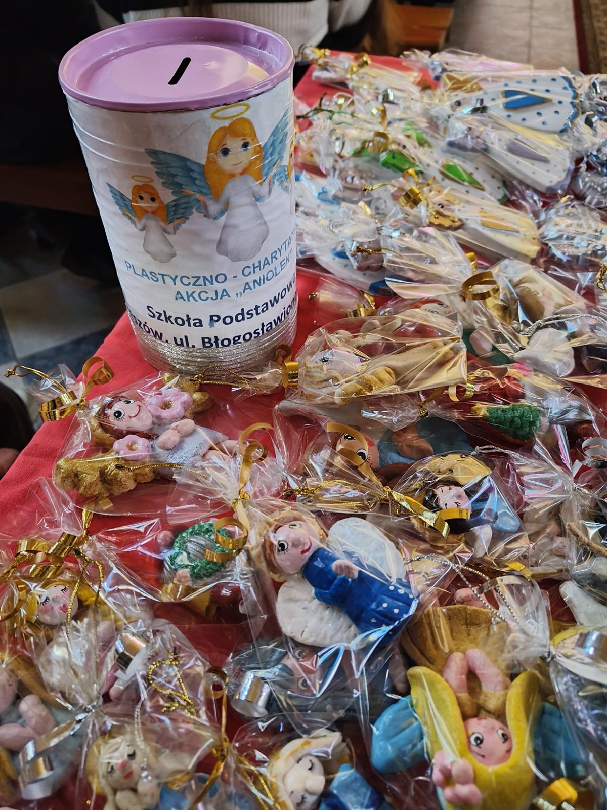 Plastyczno – charytatywna akcja „Aniołek” jest tradycją w naszej szkole już od dziesięciu lat. W tym roku była to akcja rekordowa nie tylko ze względu na jej jubileusz, ale też z powodu ilości uczniów, którzy się w nią włączyli. Na pozalekcyjne zajęcia plastyczne przychodziło średnio 40 osób. Akcja trwała od października i zakończyła się dwoma kiermaszami świątecznymi – pierwszy odbył się 14 grudnia w kościele pw. Matki Bożej Pocieszenia, drugi – 21 grudnia w kościele pw. Błogosławionej Karoliny. Dochód z aniołkowych działań przeznaczyliśmy na potrzeby Podkarpackiego Hospicjum dla Dzieci.