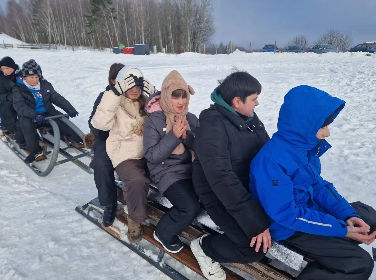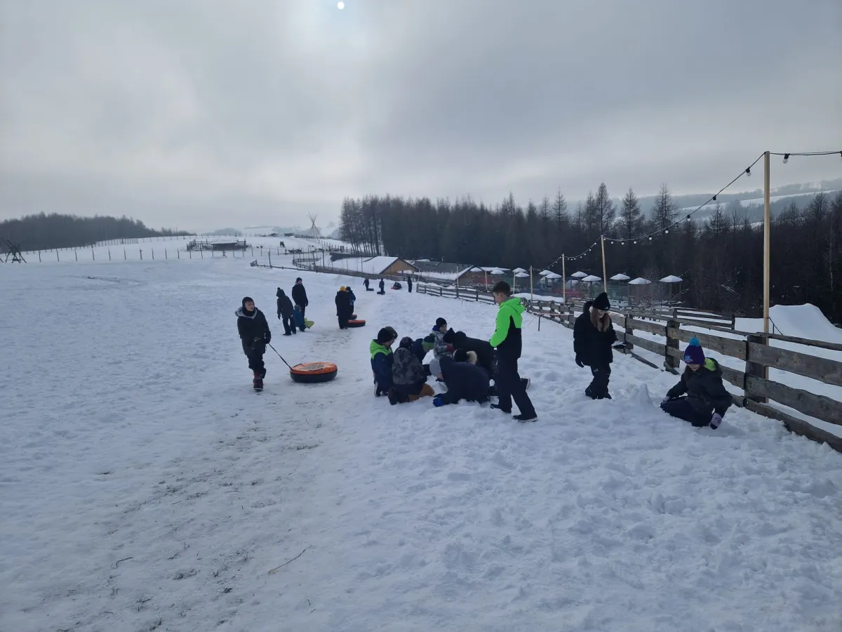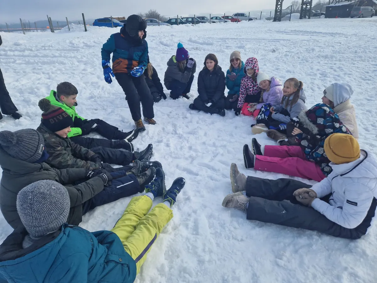 Po przyjeździe rozpoczęliśmy zabawę od zjazdów na torze pontonowym, które dostarczyły wszystkim mnóstwo radości i emocji. Następnie uczniowie przejechali piękną, zimową trasę kuligiem, podziwiając malownicze widoki.