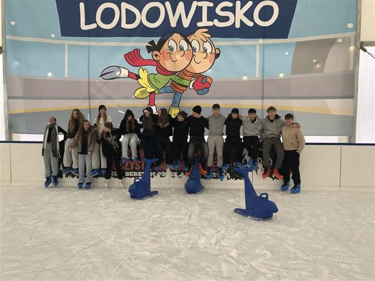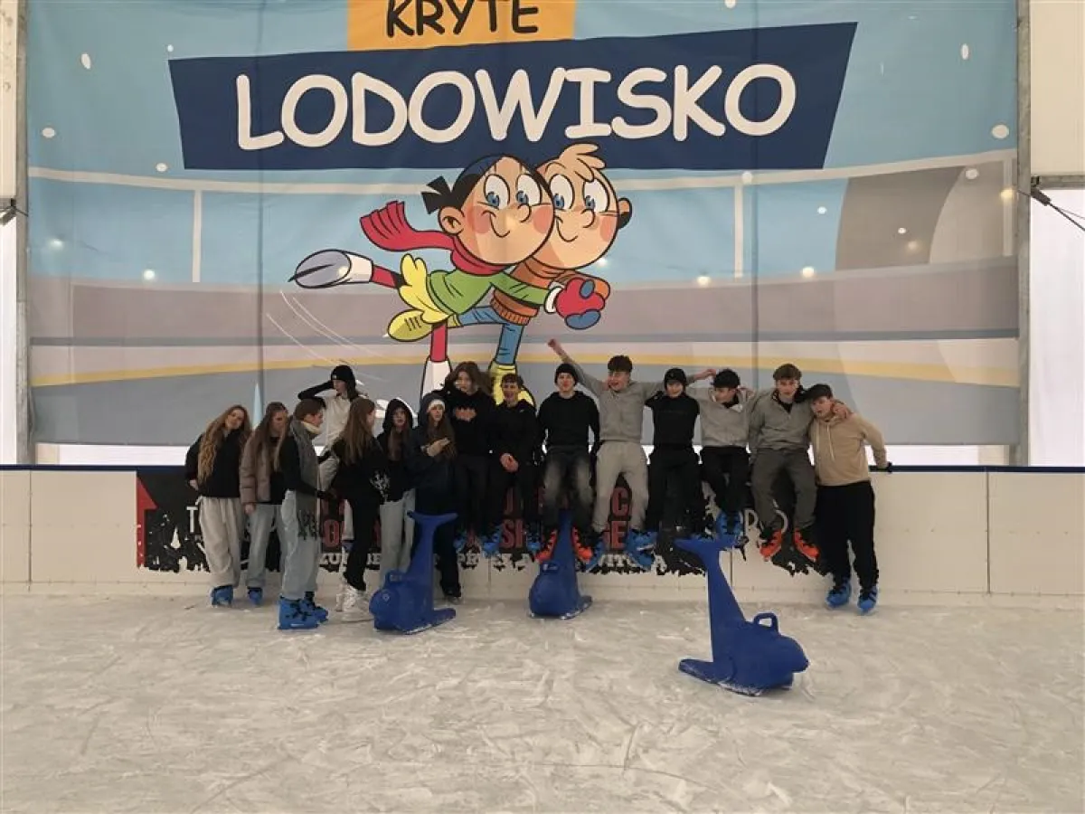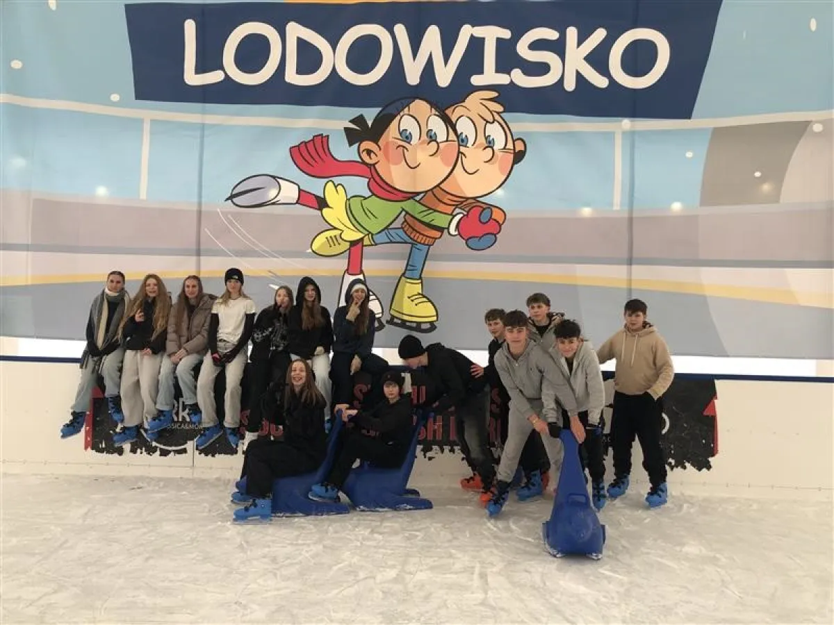 W dniu 16 stycznia 2026 roku uczniowie klasy 8d w ramach działań integracyjnych odwiedzili lodowisko przy ulicy Wyspiańskiego. Pogoda była iście zimowa – mroźna aura doskonale wpisała się w klimat wyjścia i sprzyjała aktywności na świeżym powietrzu. Uczniowie z dużym zaangażowaniem i entuzjazmem doskonalili swoje umiejętności jazdy na łyżwach, a wspólna zabawa dostarczyła wielu pozytywnych emocji i radości. Wyjście przebiegało w miłej i bezpiecznej atmosferze, sprzyjając integracji zespołu klasowego oraz promując zdrowy i aktywny styl życia.
