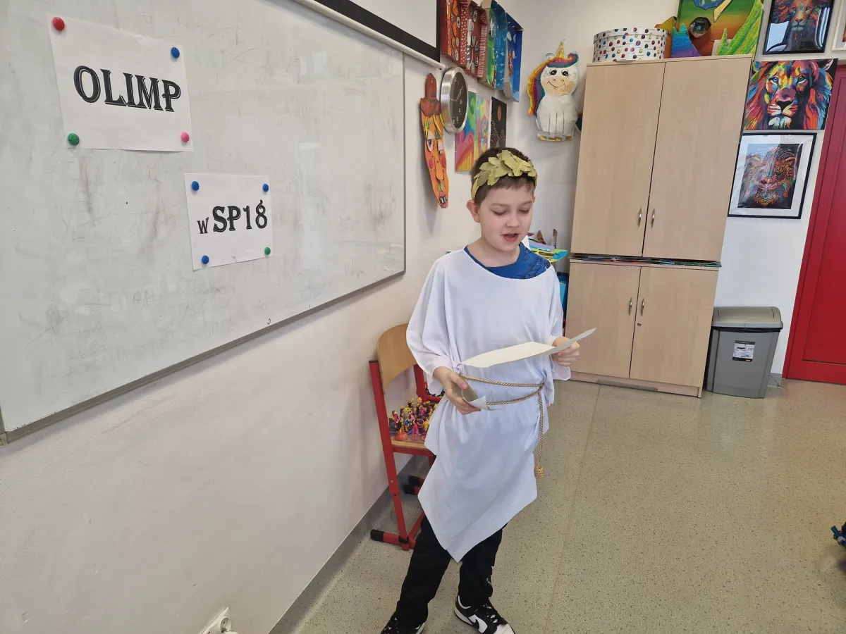 Na jeden dzień greccy bogowie zmienili swoją siedzibę z Olimpu na naszą szkołę. Stało się to 17 marca za sprawą uczniów klas 5b, 5c i 5f, którzy na zakończenie omawiania na języku polskim działu dotyczącego mitologii greckiej, wcielili się w swoich ulubionych bogów.