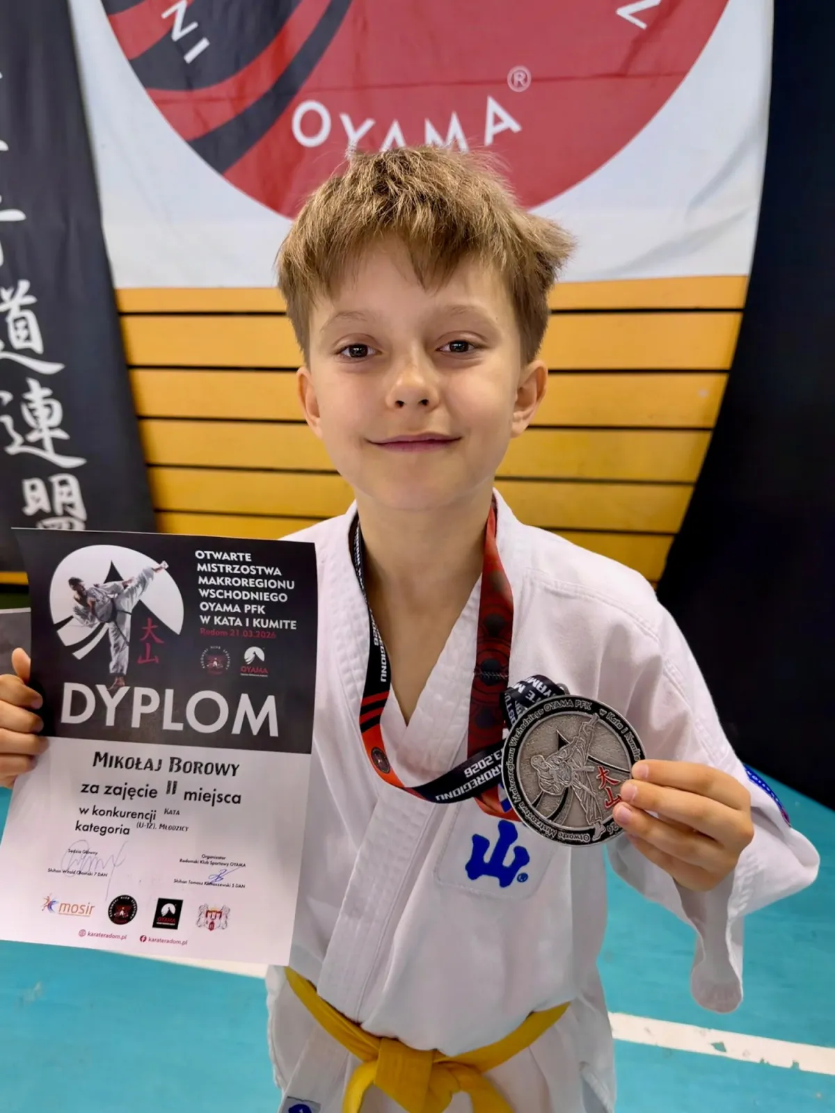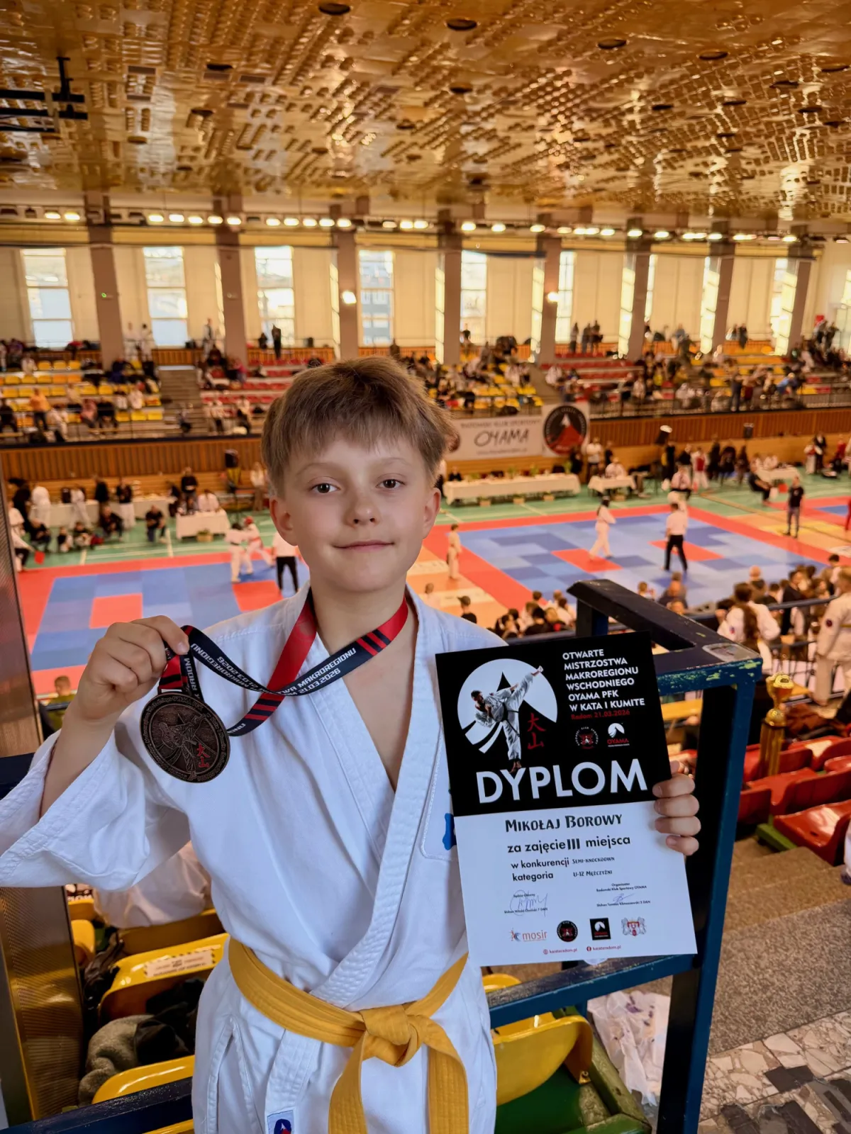 Mikołaj Borowy (kl. 4e) - U-12 – 2 miejsce w kata, 3 miejsce w kumite