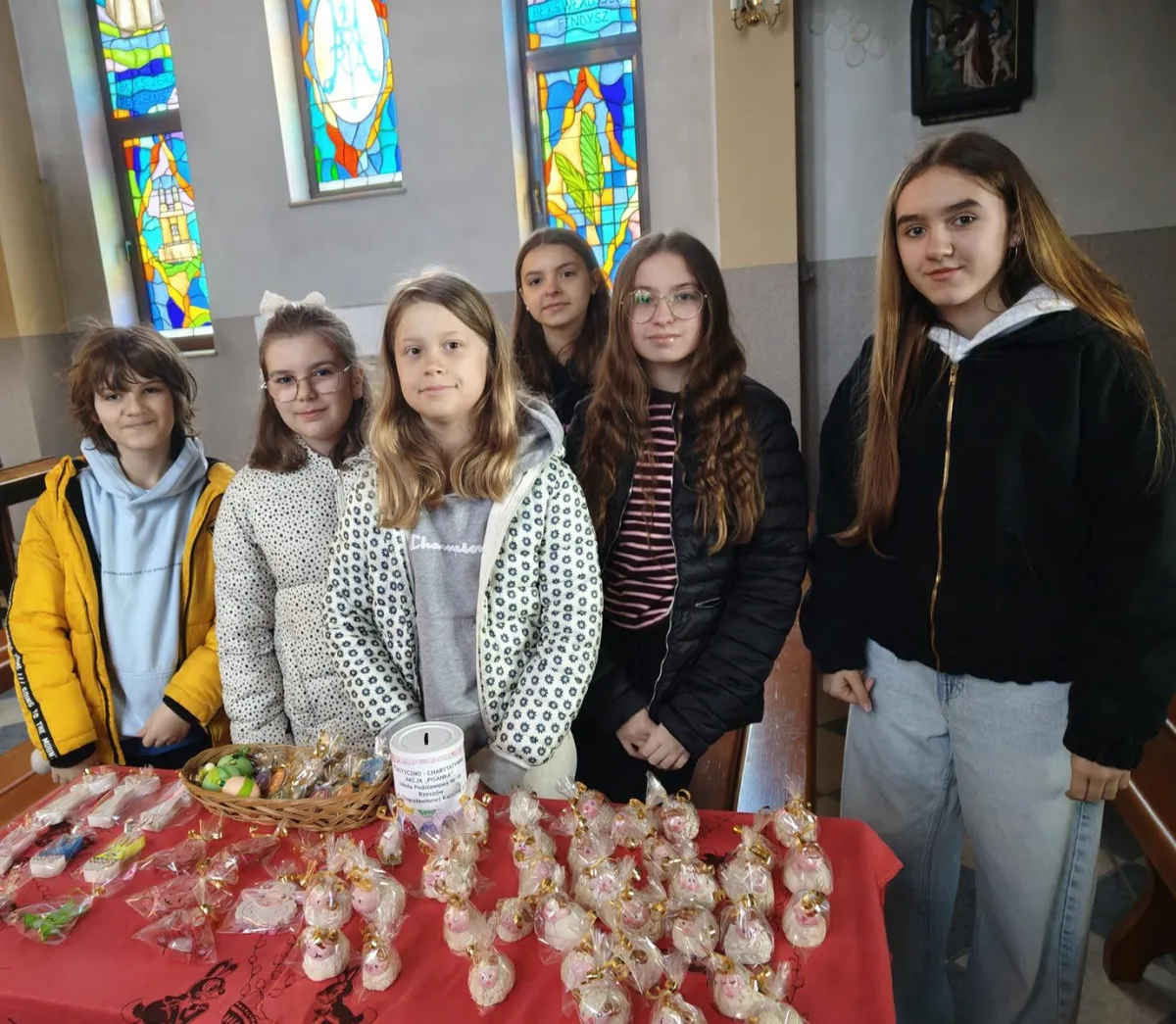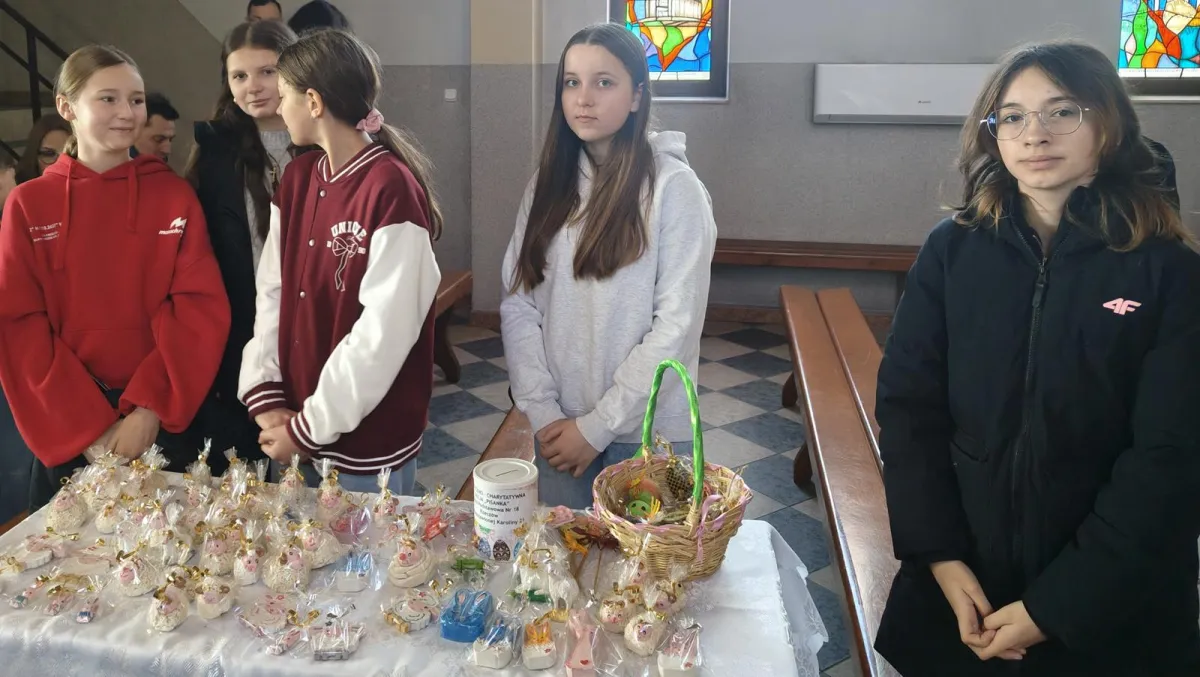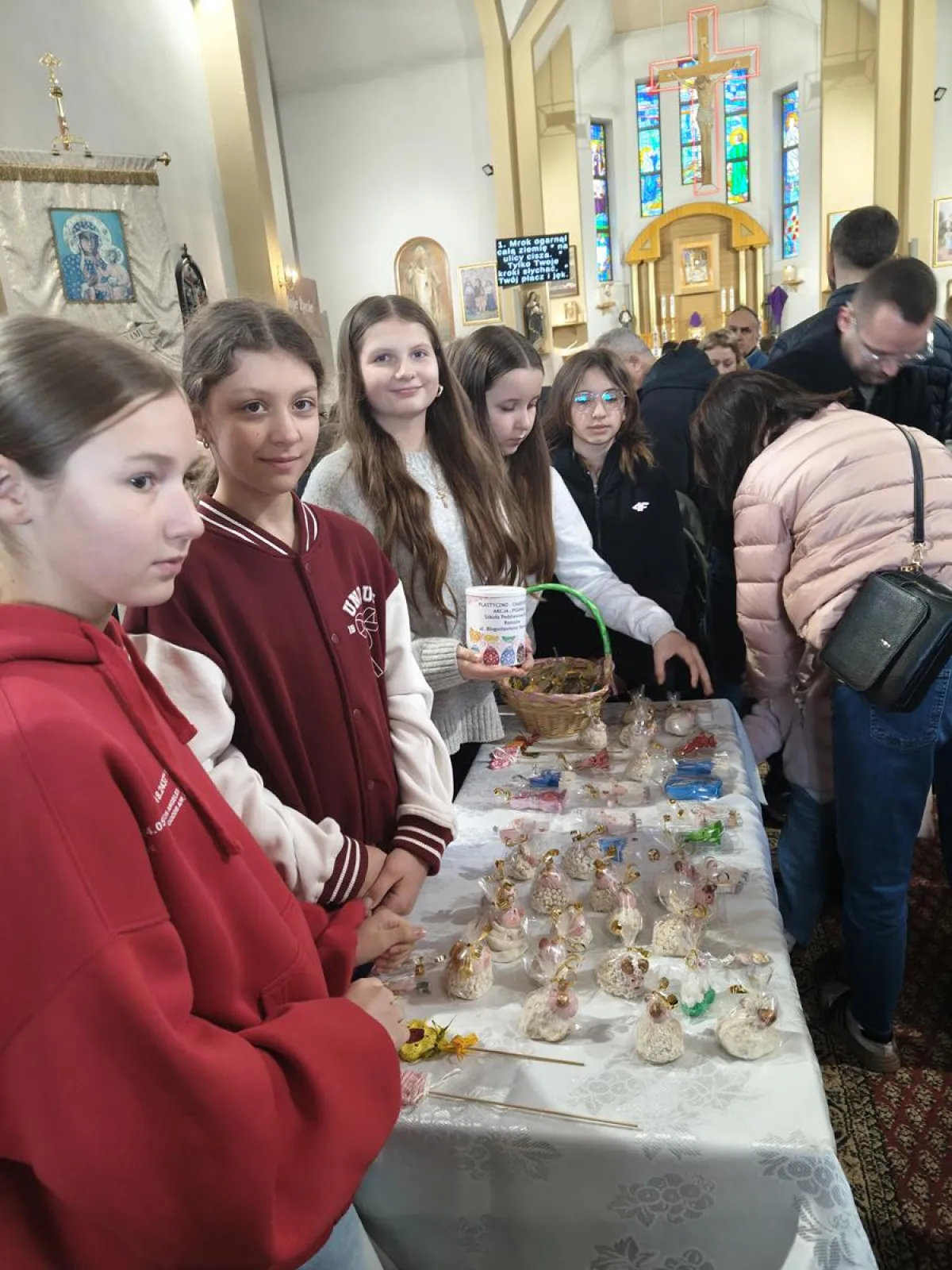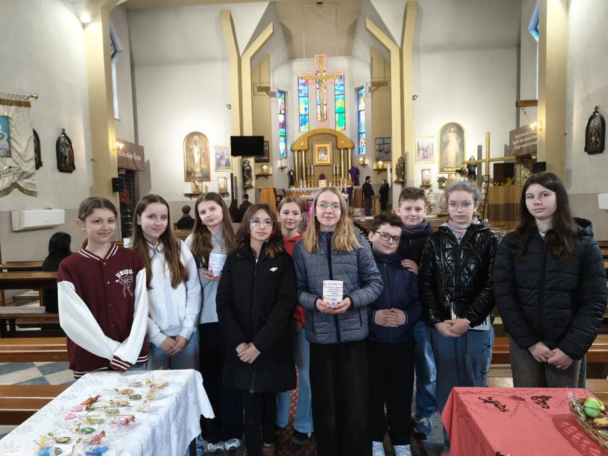 Jak co roku w naszej szkole przeprowadzona została plastyczno – charytatywna akcja „Baranek”. Utalentowana i chętna do pomocy młodzież, przez ponad miesiąc wykonywała przepiękne wielkanocne ozdoby. Finał akcji miał miejsce w kościele pw. Matki Bożej Pocieszania, w dniu 29 marca 2026 r. Podczas kiermaszu spotkaliśmy się z bardzo życzliwym przyjęciem zarówno ze strony księdza proboszcza, jak i osób wspierających nasze działania. Wszystkim serdecznie dziękujemy i życzymy, pięknych, rodzinnych Świąt Wielkanocnych.
