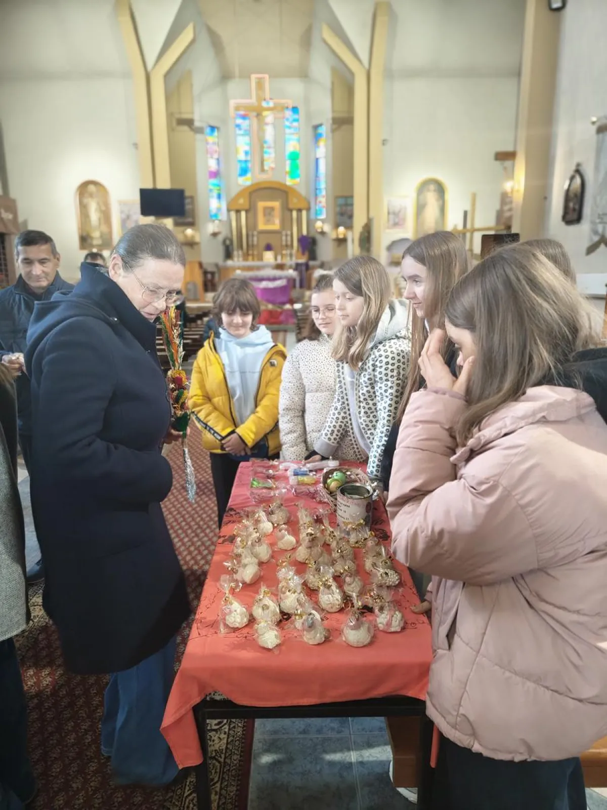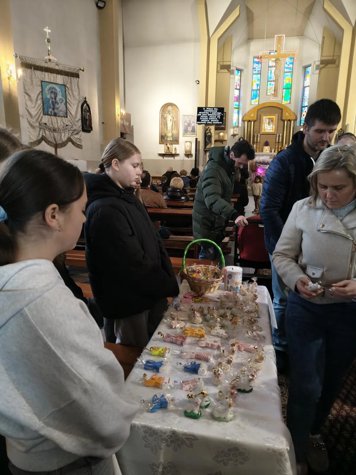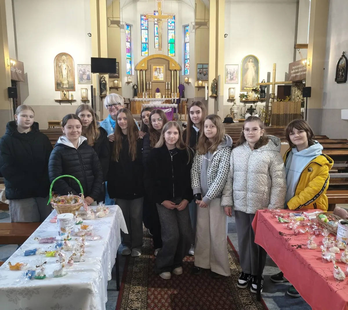 Jak co roku w naszej szkole przeprowadzona została plastyczno – charytatywna akcja „Baranek”. Utalentowana i chętna do pomocy młodzież, przez ponad miesiąc wykonywała przepiękne wielkanocne ozdoby. Finał akcji miał miejsce w kościele pw. Matki Bożej Pocieszania, w dniu 29 marca 2026 r. Podczas kiermaszu spotkaliśmy się z bardzo życzliwym przyjęciem zarówno ze strony księdza proboszcza, jak i osób wspierających nasze działania. Wszystkim serdecznie dziękujemy i życzymy, pięknych, rodzinnych Świąt Wielkanocnych.