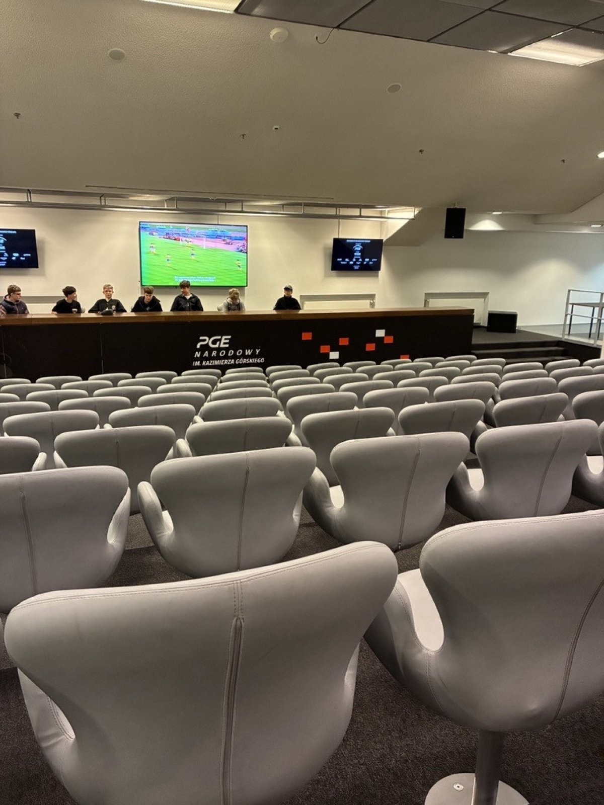 Drugi dzień wycieczki zaczął się od zwiedzania Stadionu Narodowego. Uczniowie zobaczyli szatnię zawodników, zajrzeli do strefy zawodniczej, odwiedzili Strefę Pucharową oraz przeszli przez Mix Zone. Ponadto poznali kulisy przeprowadzania wywiadów.