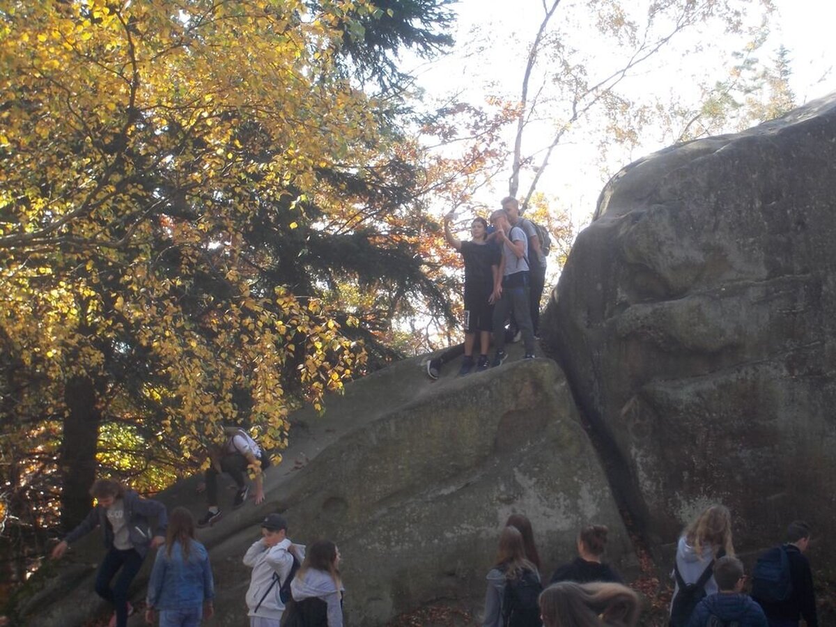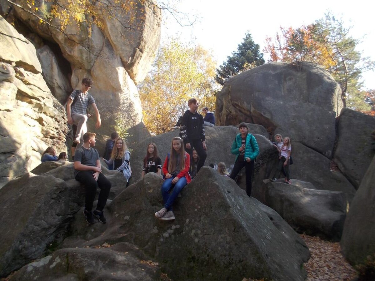 Następnie uczniowie udali się do Rezerwatu „Prządki”, mieszczącego się niedaleko ruin zamku. Te osobliwe skały bardzo spodobały się wszystkim, a wspaniała pogoda zachęcała do odkrywania licznych zakamarków i do odpoczynku w skalnych załomach.