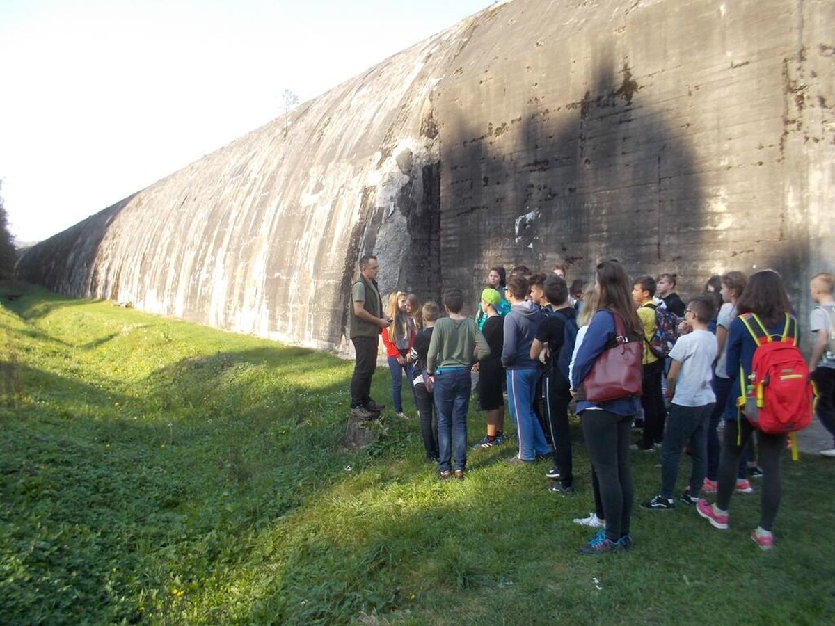 Kolejnym etapem wycieczki było zwiedzanie schronu kolejowego Stępina z czasów II wojny światowej, w którym w 1941 roku spotkali się Hitler i Mussolini. Tunel naziemny zrobił na wszystkich duże wrażenie i nie trzeba było nikogo zachęcać do przejścia całej jego długości. Uczniowie chętnie zaglądali też do bocznych korytarzy i wypatrywali nietoperzy, które polubiły to miejsce.
