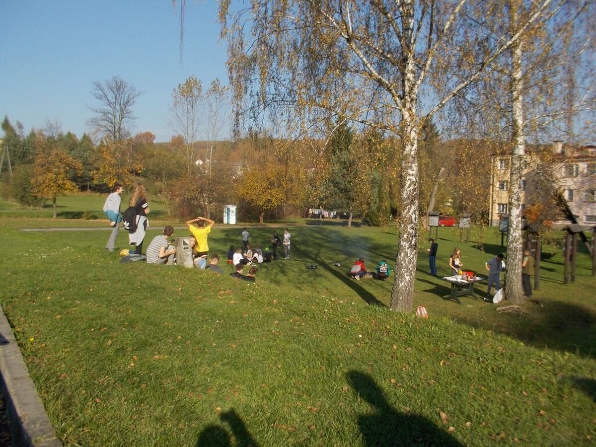 Ostatnim punktem programu było ognisko z pieczeniem kiełbasek. W przyjemnej atmosferze, niedaleko lasu i pośród jesiennej przyrody wspaniały dzień wycieczki powoli dobiegł końca, ale pozostanie w naszej pamięci na długo.