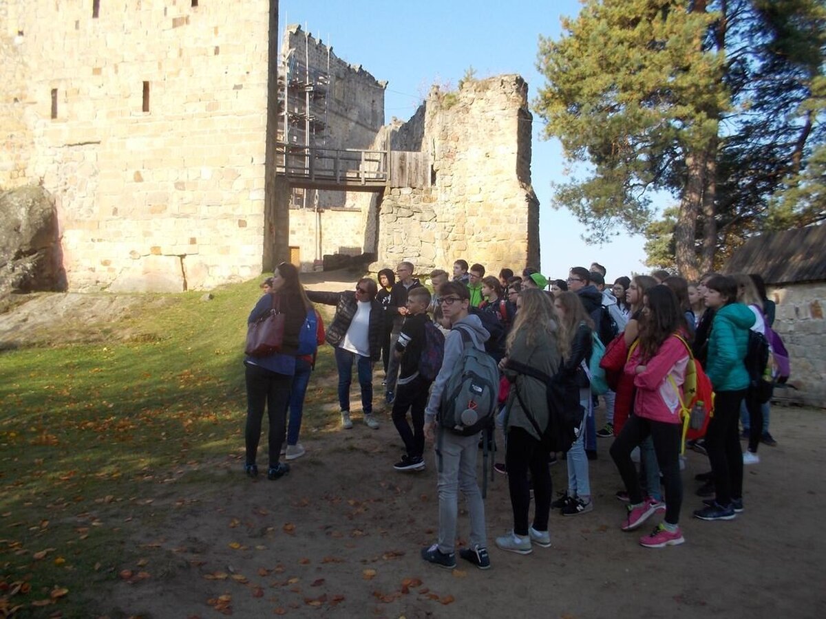 Pierwszym punktem programu było zwiedzanie ruin Zamku Kamieniec w Odrzykoniu, poznanie jego bogatej historii i niezwykłych mieszkańców, których nieustające spory i waśnie stały się kanwą dla „Zemsty”.