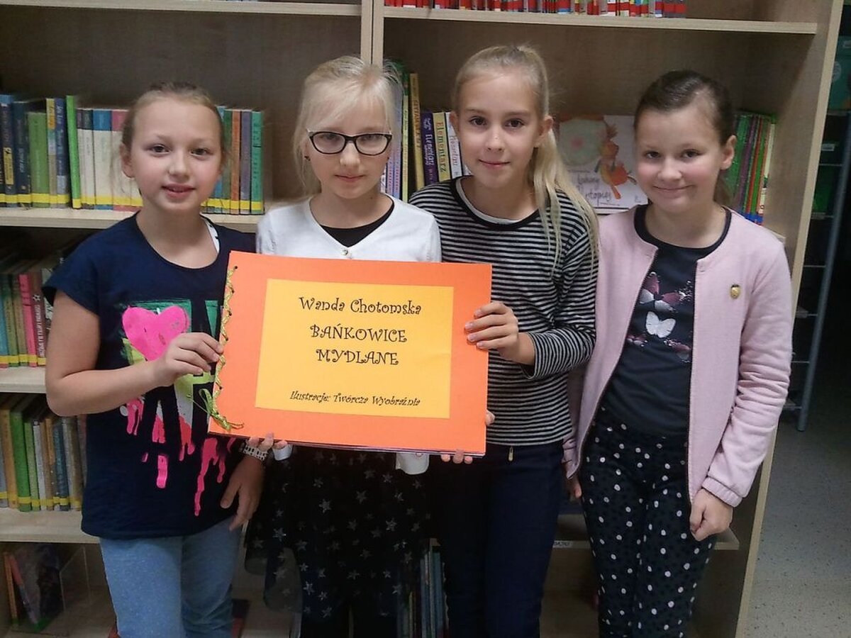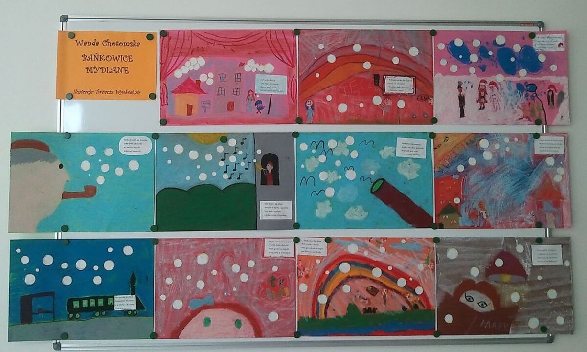 Ponadto uczniowie uczestniczący w zajęciach czytelniczo-plastycznych „Twórcza Wyobraźnia” wraz z p. Alicją Kwaśniewską, przygotowali książkę z własnymi ilustracjami do wiersza W. Chotomskiej „Bańkowice mydlane”.