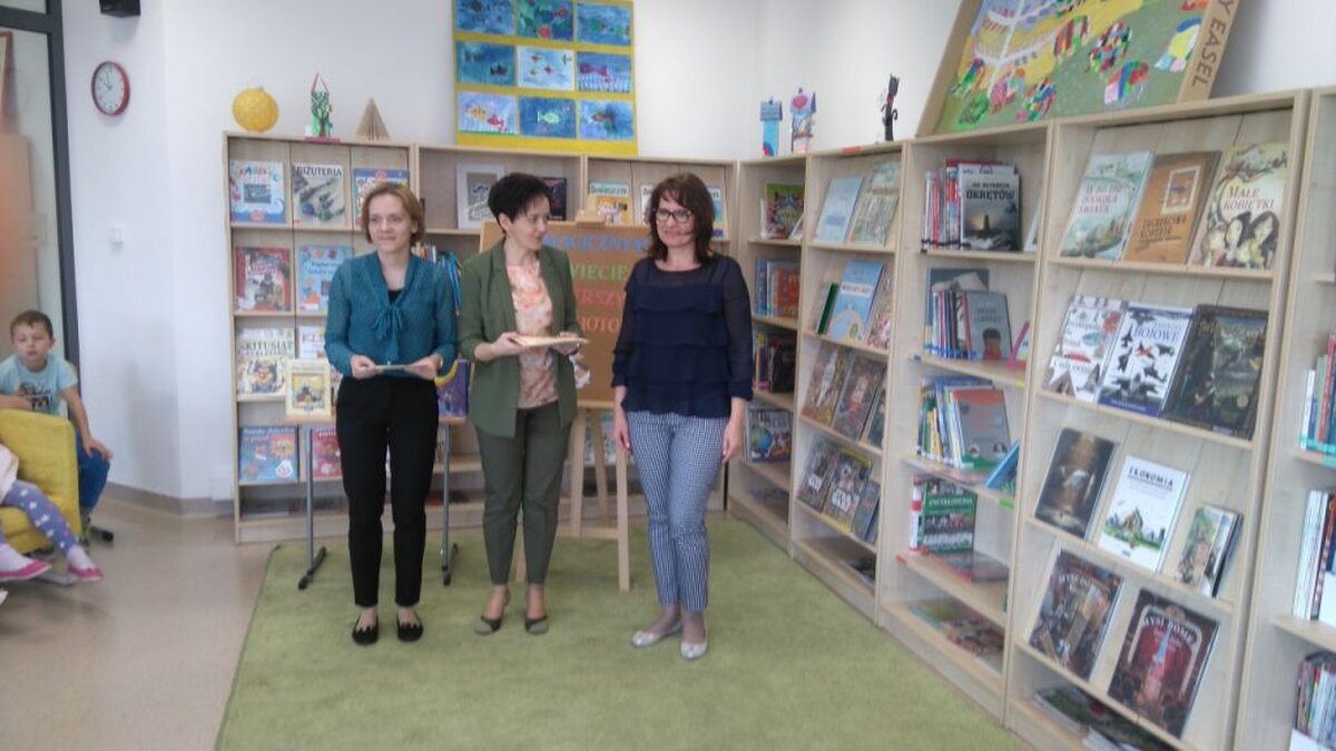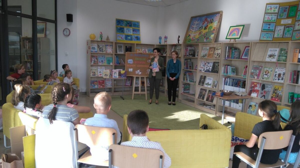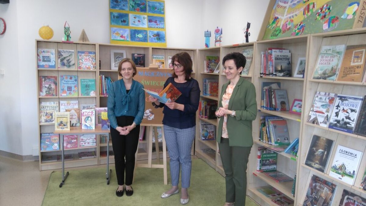 Uczniowie mogli też uzupełnić swoje wiadomości i zaspokoić ciekawość dotyczącą tej osoby, czytając informacje zamieszczone na przygotowanej z tej okazji gazetce przy wejściu do biblioteki, czy zagłębiając się w książkach Chotomskiej i o Chotomskiej w czytelni.