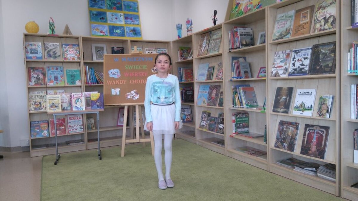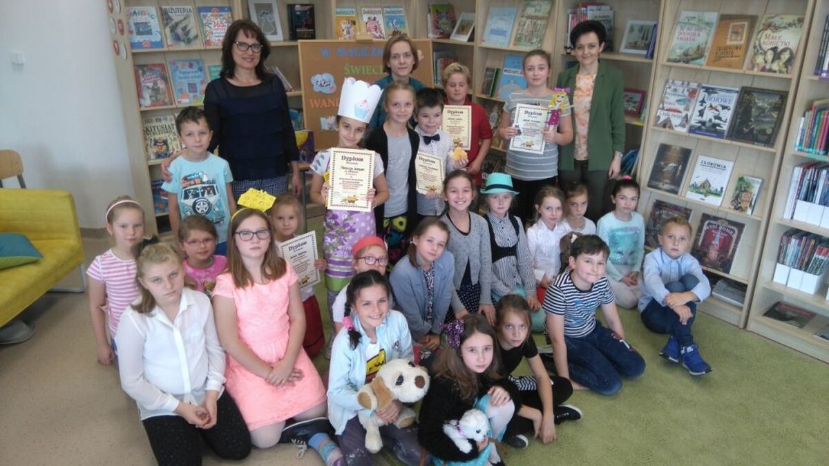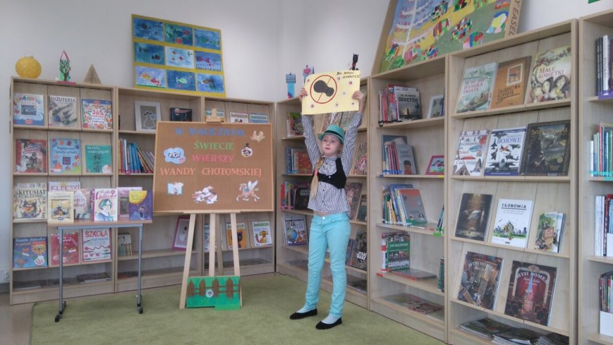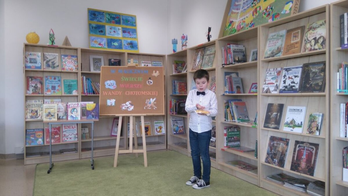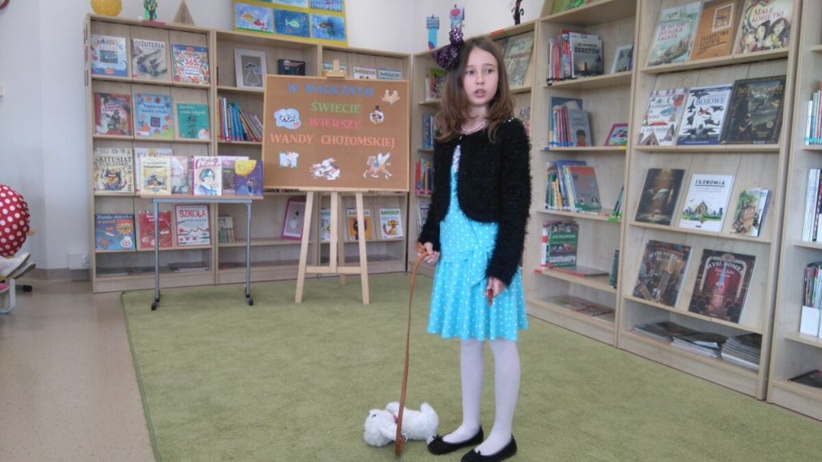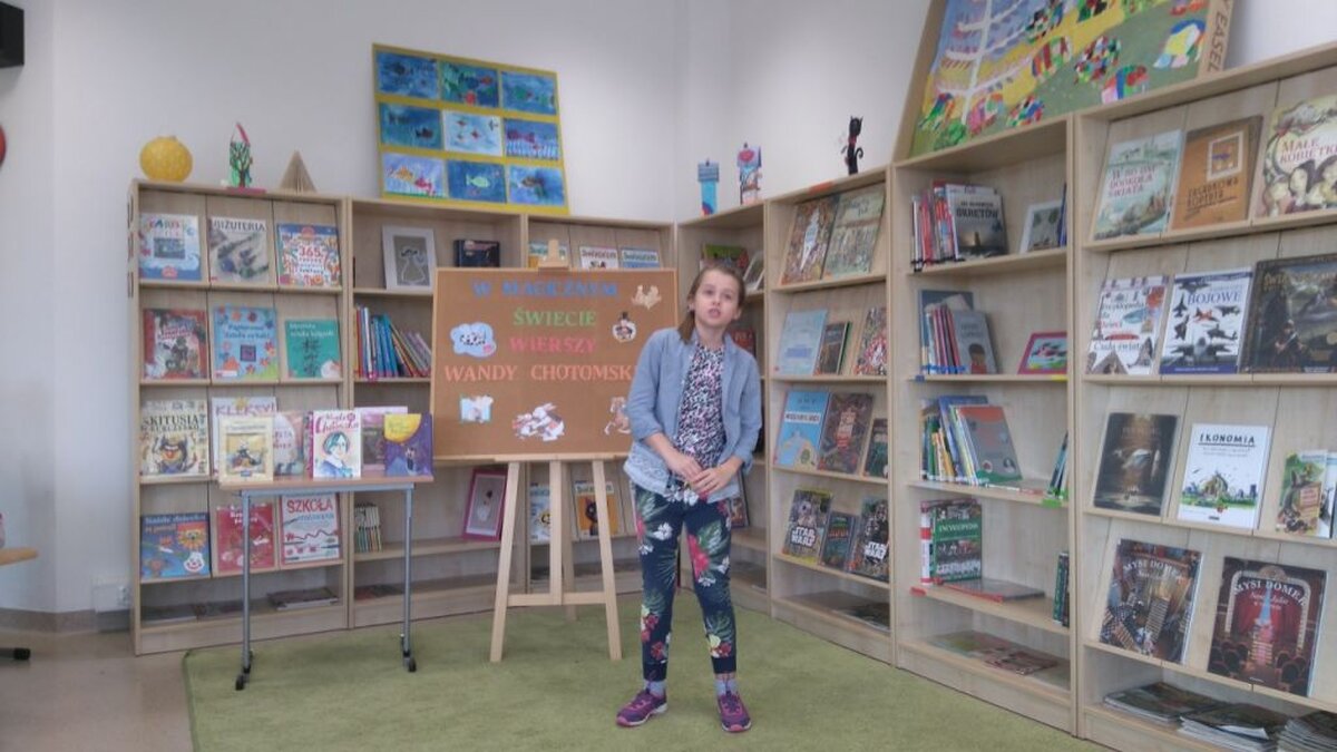 Został również zorganizowany konkurs recytatorski ph. „W magicznym świecie wierszy Wandy Chotomskiej”, którego uczestnikami byli uczniowie klas 2-5. Uczestnicy prezentowali utwory Chotomskiej w pięknej oprawie artystycznej, pełnej gestów, rekwizytów i głośnych braw. Zwycięzcami w tej dziedzinie okazali się: Mikołaj Feleńczak z kl. 3a, Patrycja Świąder z kl. 5a i Stefan Uliasz z kl. 4c; wyróżnione zostały: Basia Rzepka z kl. 2a i Kasia Cwynar z kl. 4d. Młodym talentom z serca gratulujemy i życzymy sukcesów.