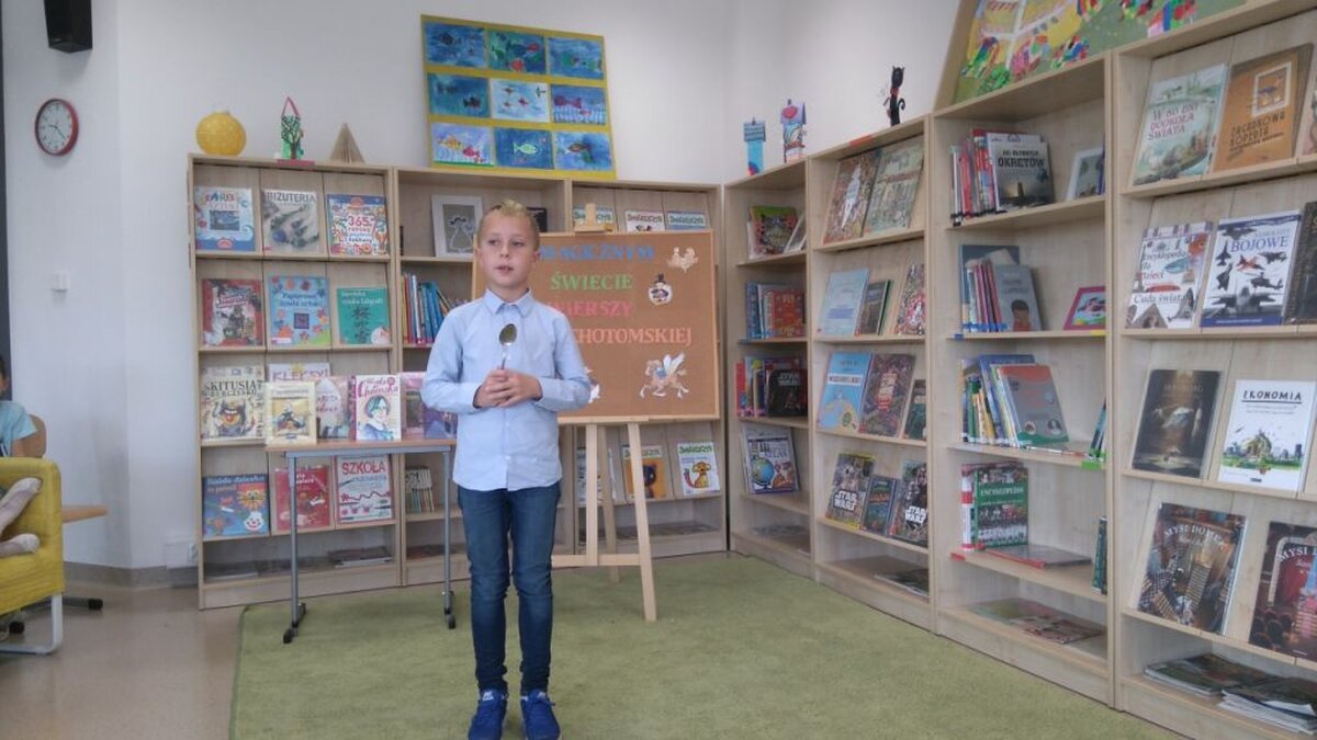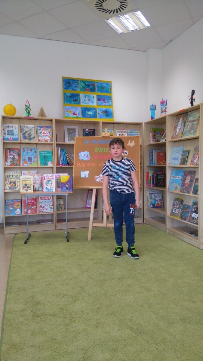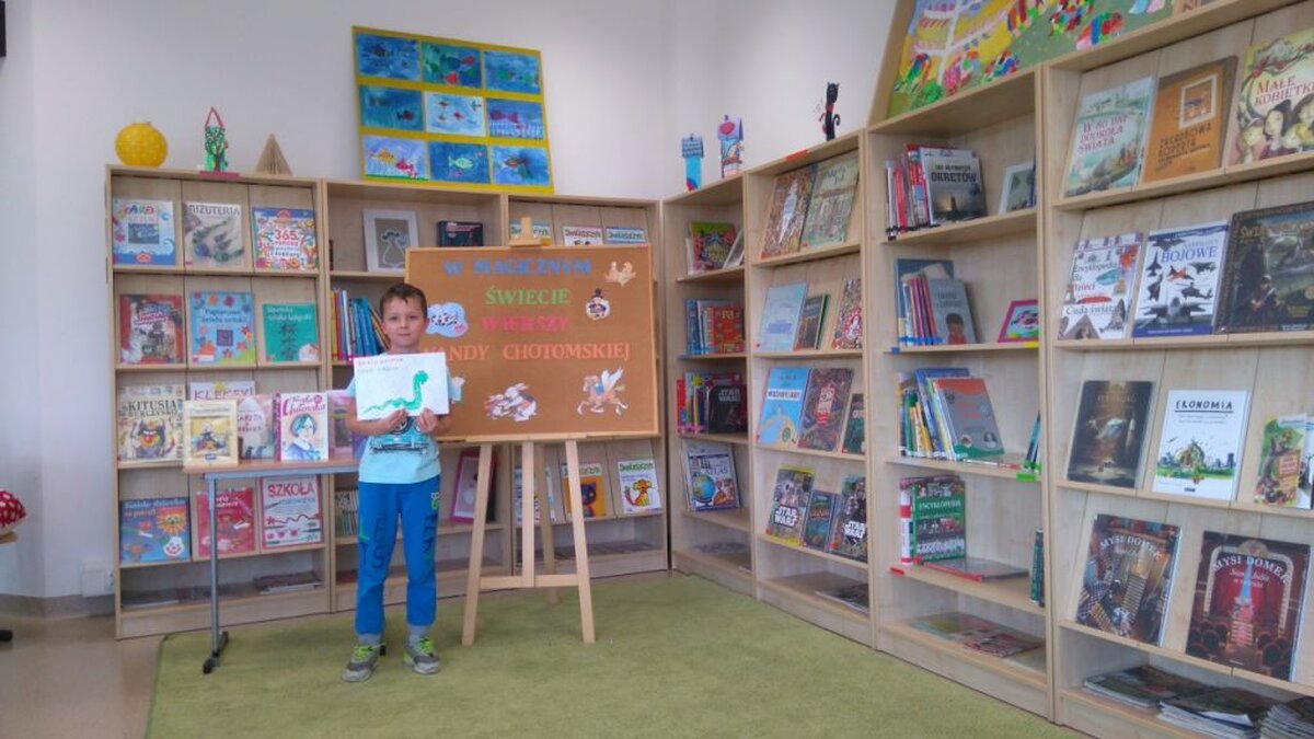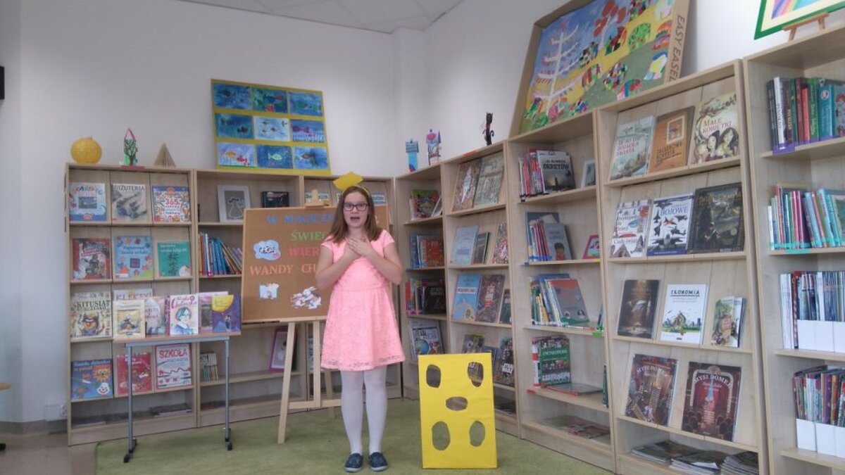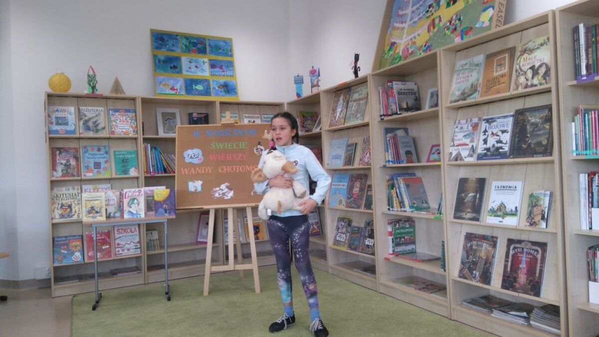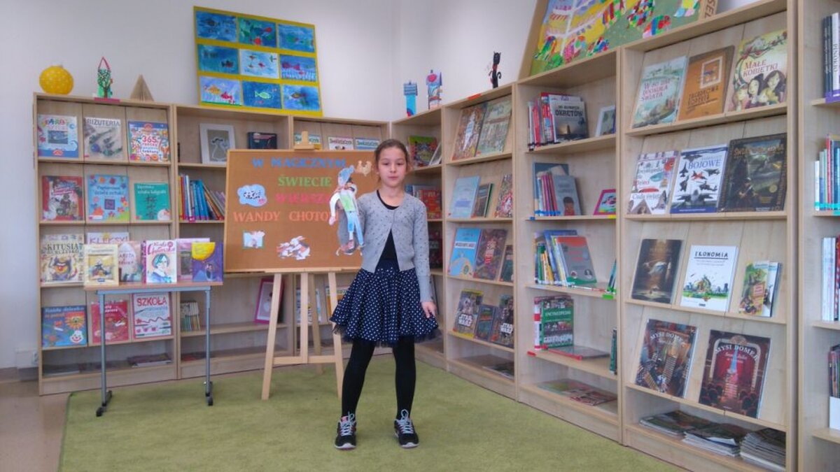 Został również zorganizowany konkurs recytatorski ph. „W magicznym świecie wierszy Wandy Chotomskiej”, którego uczestnikami byli uczniowie klas 2-5. Uczestnicy prezentowali utwory Chotomskiej w pięknej oprawie artystycznej, pełnej gestów, rekwizytów i głośnych braw. Zwycięzcami w tej dziedzinie okazali się: Mikołaj Feleńczak z kl. 3a, Patrycja Świąder z kl. 5a i Stefan Uliasz z kl. 4c; wyróżnione zostały: Basia Rzepka z kl. 2a i Kasia Cwynar z kl. 4d. Młodym talentom z serca gratulujemy i życzymy sukcesów.