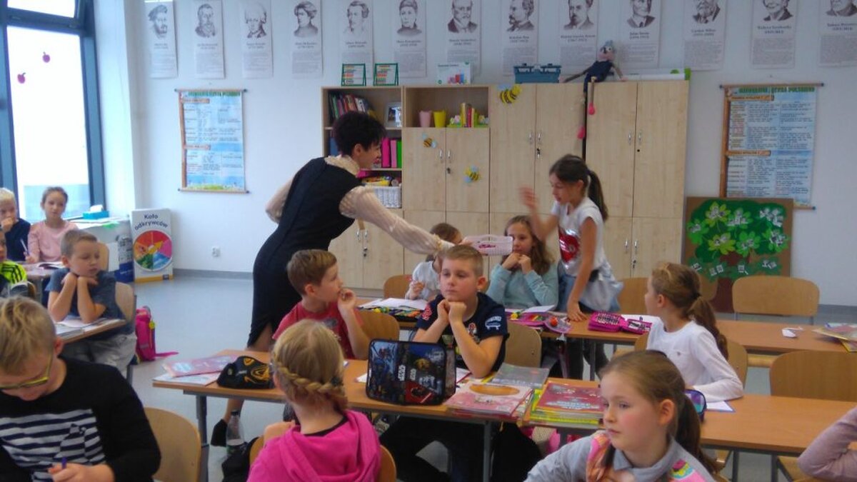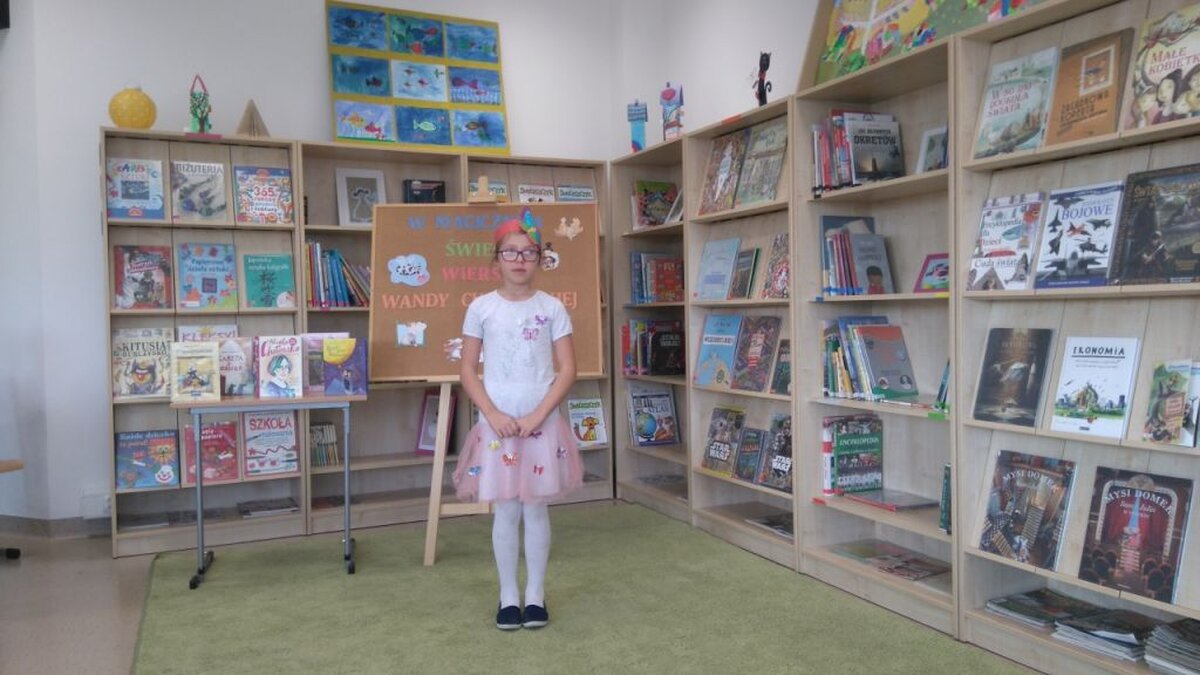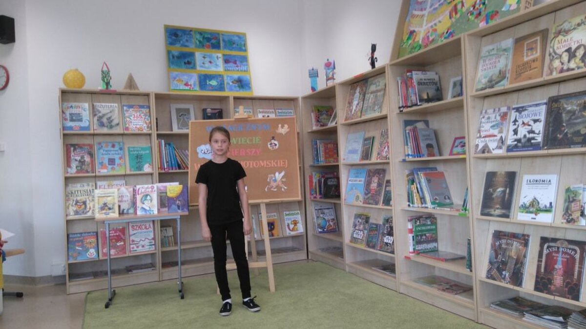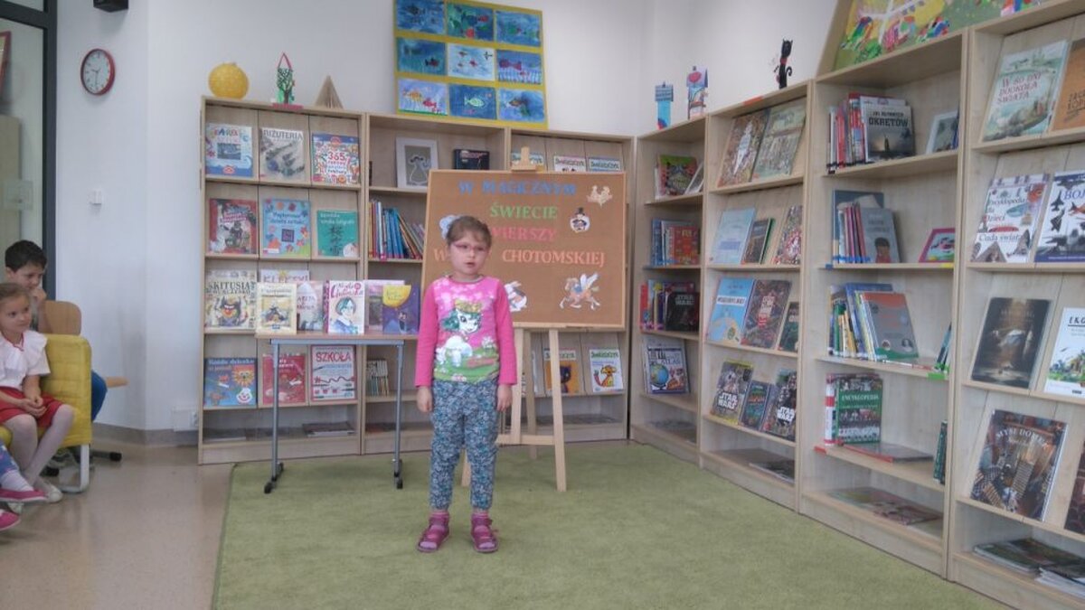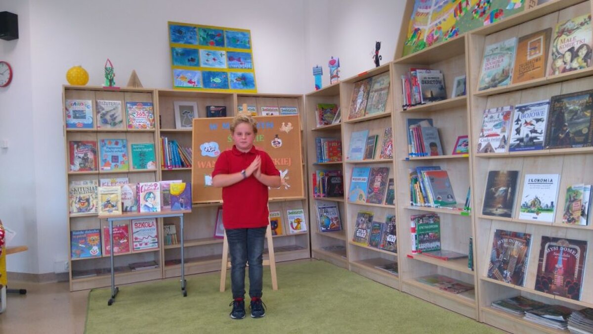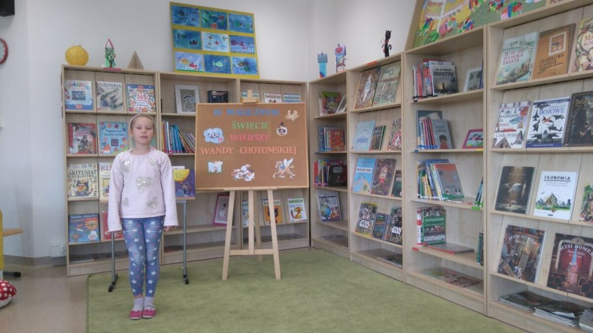 Został również zorganizowany konkurs recytatorski ph. „W magicznym świecie wierszy Wandy Chotomskiej”, którego uczestnikami byli uczniowie klas 2-5. Uczestnicy prezentowali utwory Chotomskiej w pięknej oprawie artystycznej, pełnej gestów, rekwizytów i głośnych braw. Zwycięzcami w tej dziedzinie okazali się: Mikołaj Feleńczak z kl. 3a, Patrycja Świąder z kl. 5a i Stefan Uliasz z kl. 4c; wyróżnione zostały: Basia Rzepka z kl. 2a i Kasia Cwynar z kl. 4d. Młodym talentom z serca gratulujemy i życzymy sukcesów.